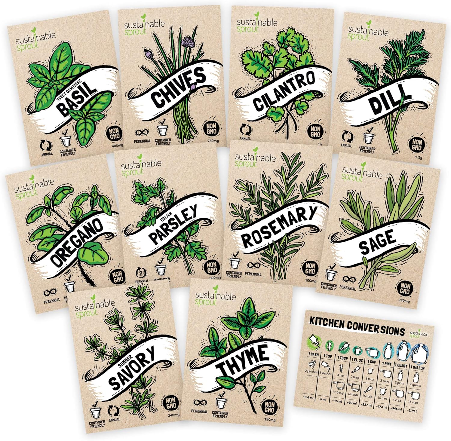 • EXCLUSIVE HERB SEED VARIETY PACK with BONUS MAGNET: Elevate your culinary experience with Sustainable Sprout's Ultimate Herb Seed Variety Pack. Grow your kitchen herb garden with popular varieties such as basil, cilantro, parsley, chives, thyme, oregano, dill, rosemary, sage, and summer savory. As a bonus, receive a Kitchen Conversion Magnet for added convenience in your cooking space. Perfect for homesteading essentials, prepper supplies, seed vault kit heirloom seeds or seed starter kits.