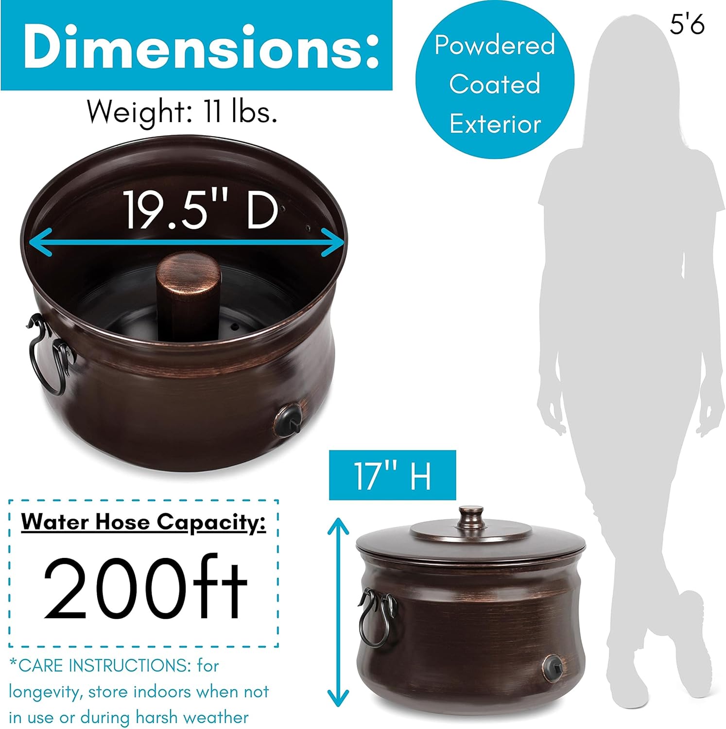 • VERSATILE INDOOR AND OUTDOOR USE: Ideal for holding up to 200 ft of water hose, this pot also doubles as storage for household items like magazines, plants, blankets, or firewood. Weighs 12.5 lbs.