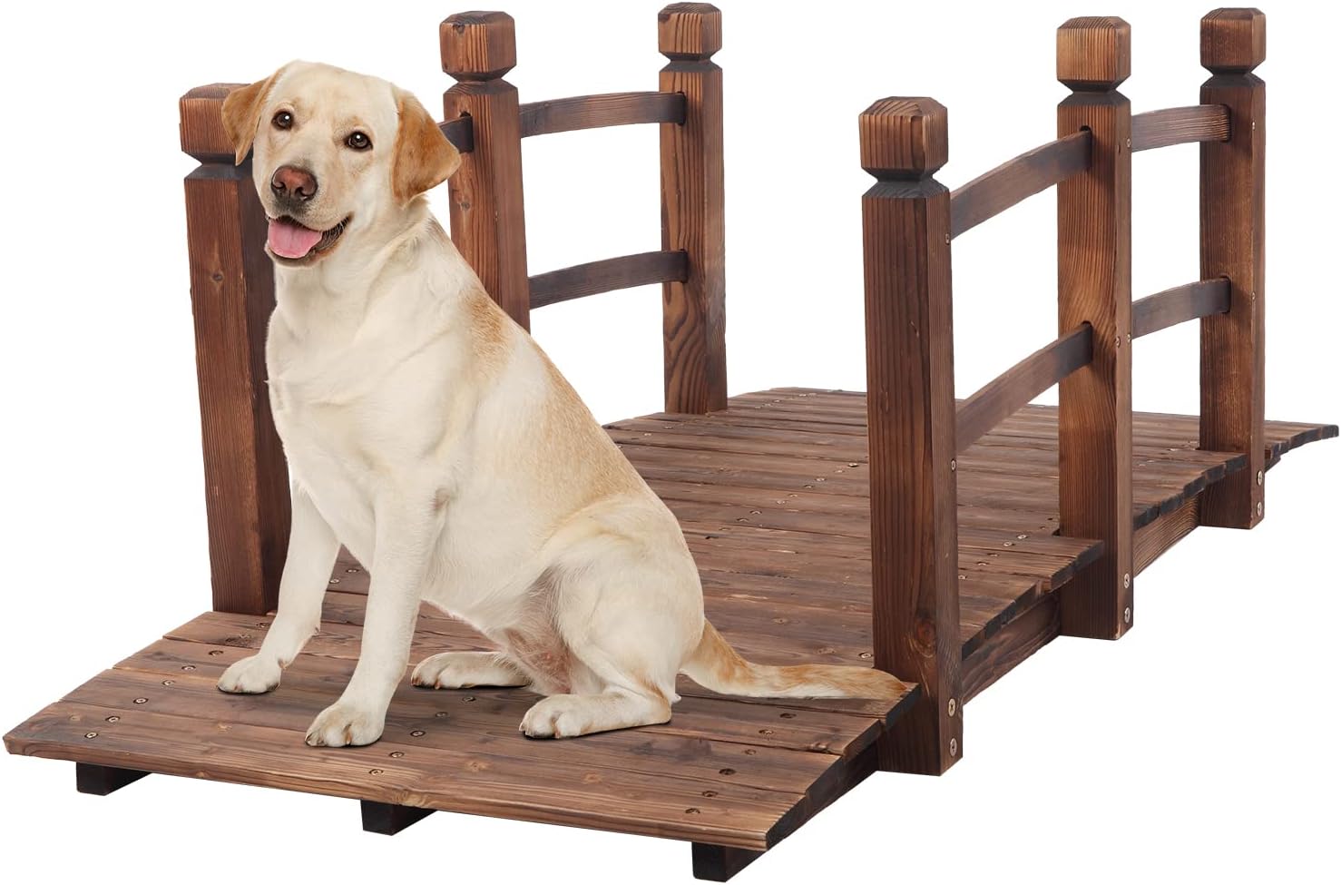 • ✔ [Decorative Bridge] Carbonized finished fir wood makes it a beautiful and rustic additional walkway to your garden, yard, creek or farm. Dimension: 59"(L) x 28"(W) X 21"(H)