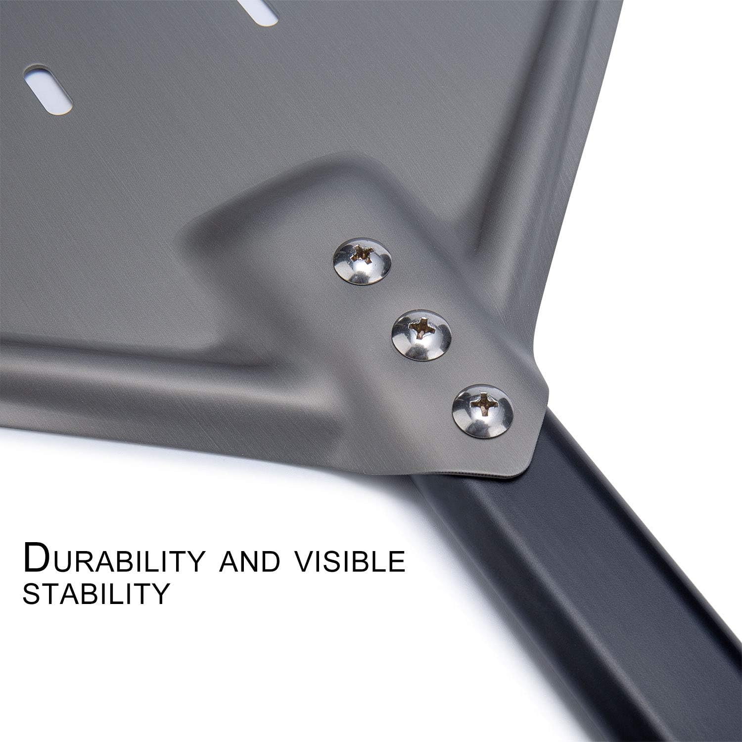 • 【PREMIUM QUALITY】Crafted from hard anodized aluminum, our pizza peel protects your dough from oxidation. The durable pizza paddle is designed to last 6 to 8 times longer than standard pizza peels, ensuring you have a reliable kitchen tool for years to come