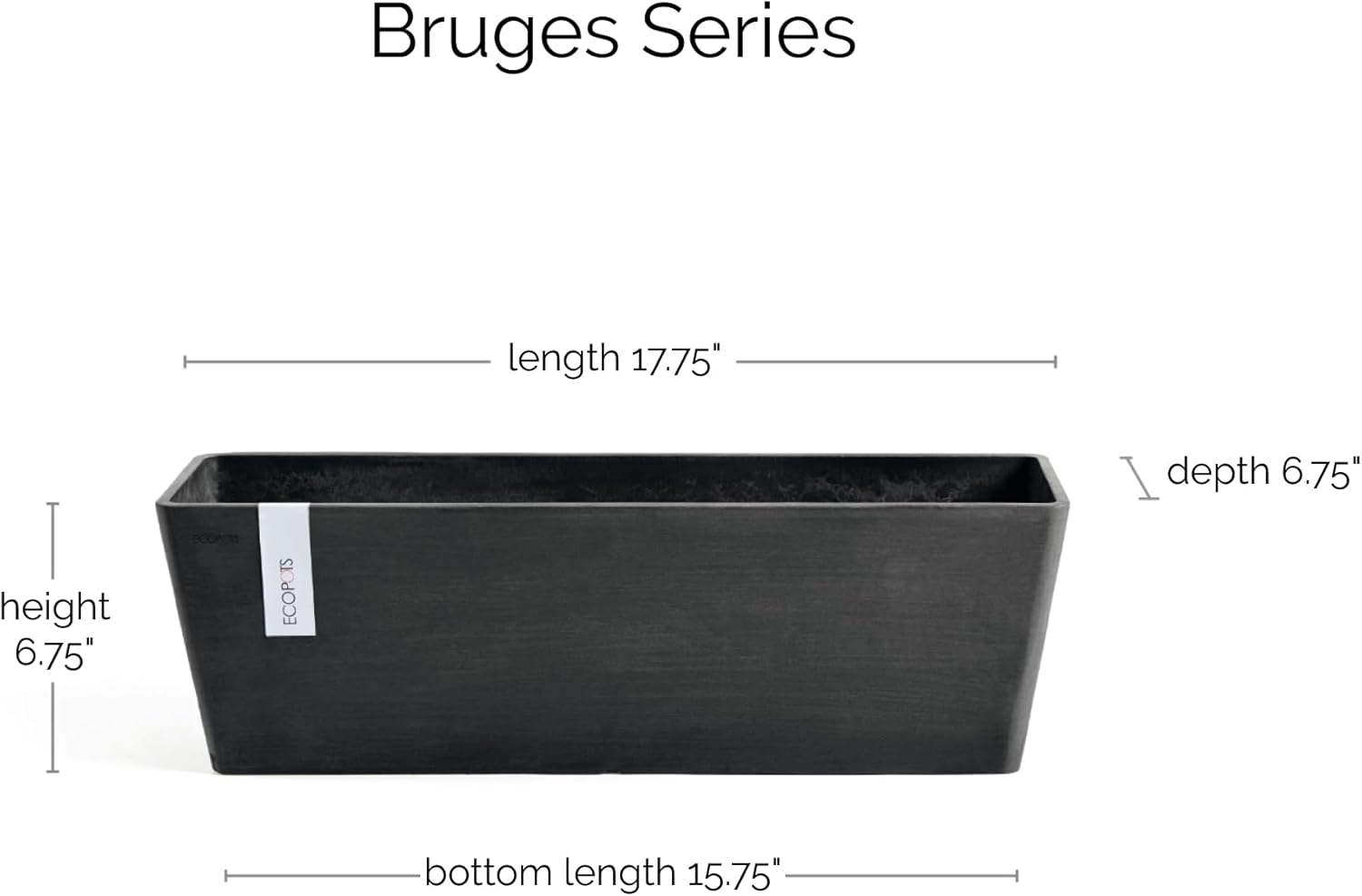 Ecopots Bruges Durable Modern Rectangular Indoor/Outdoor Recycled-Based Composite Flower Pot Planter, Dark Grey, 17.75"