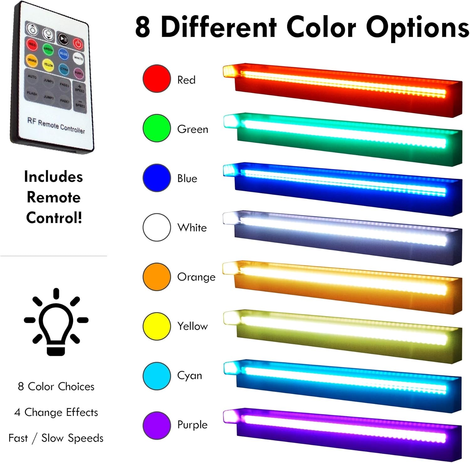 • Includes remote control for power control and brightness (color selection and changing speed if equipped) and fully removeable light bar