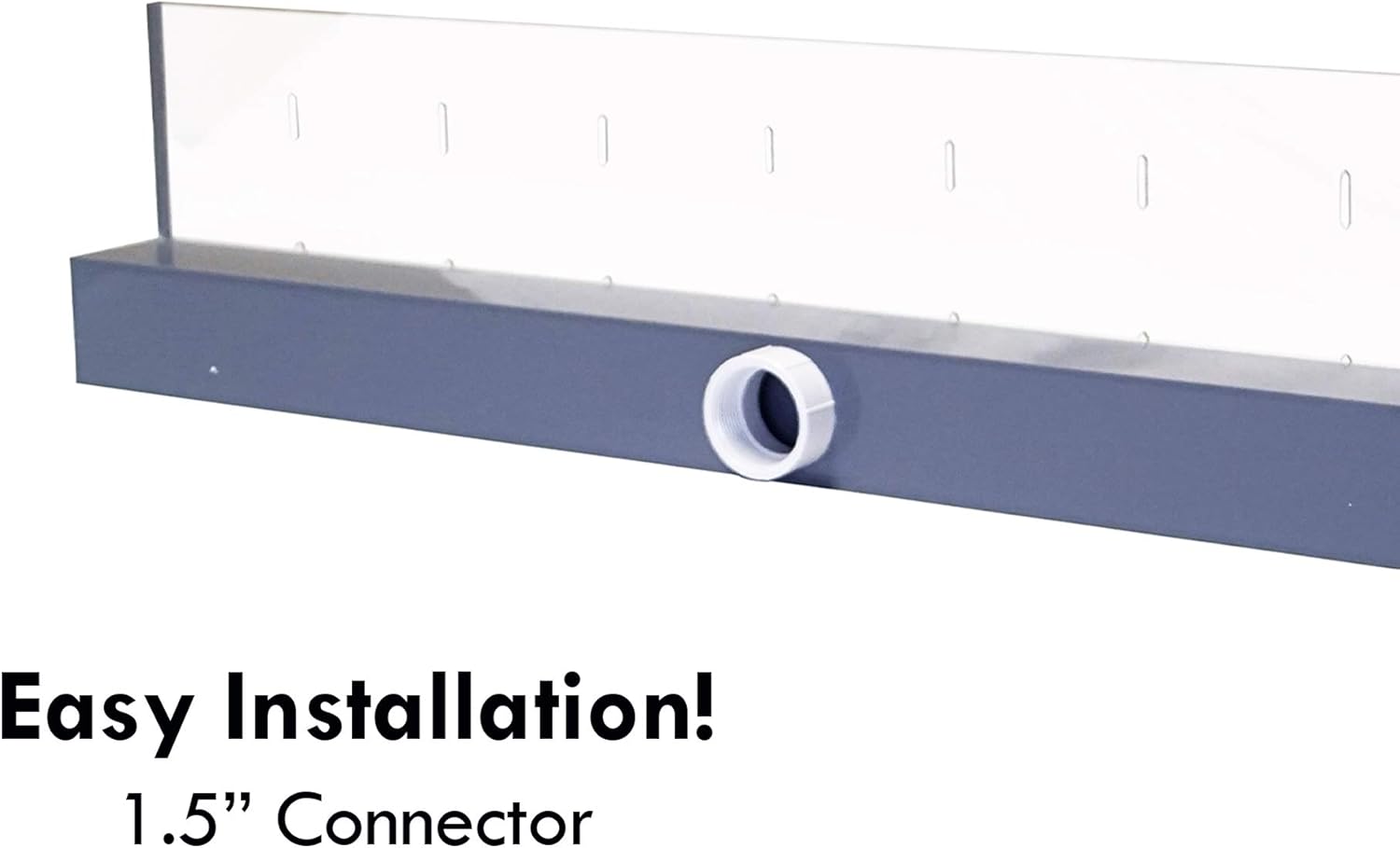 • Water inlet is 1.5" Female Thread Located In Center on spillway box bottom. We recommend 1000 GPH per foot of spillway length for proper flow