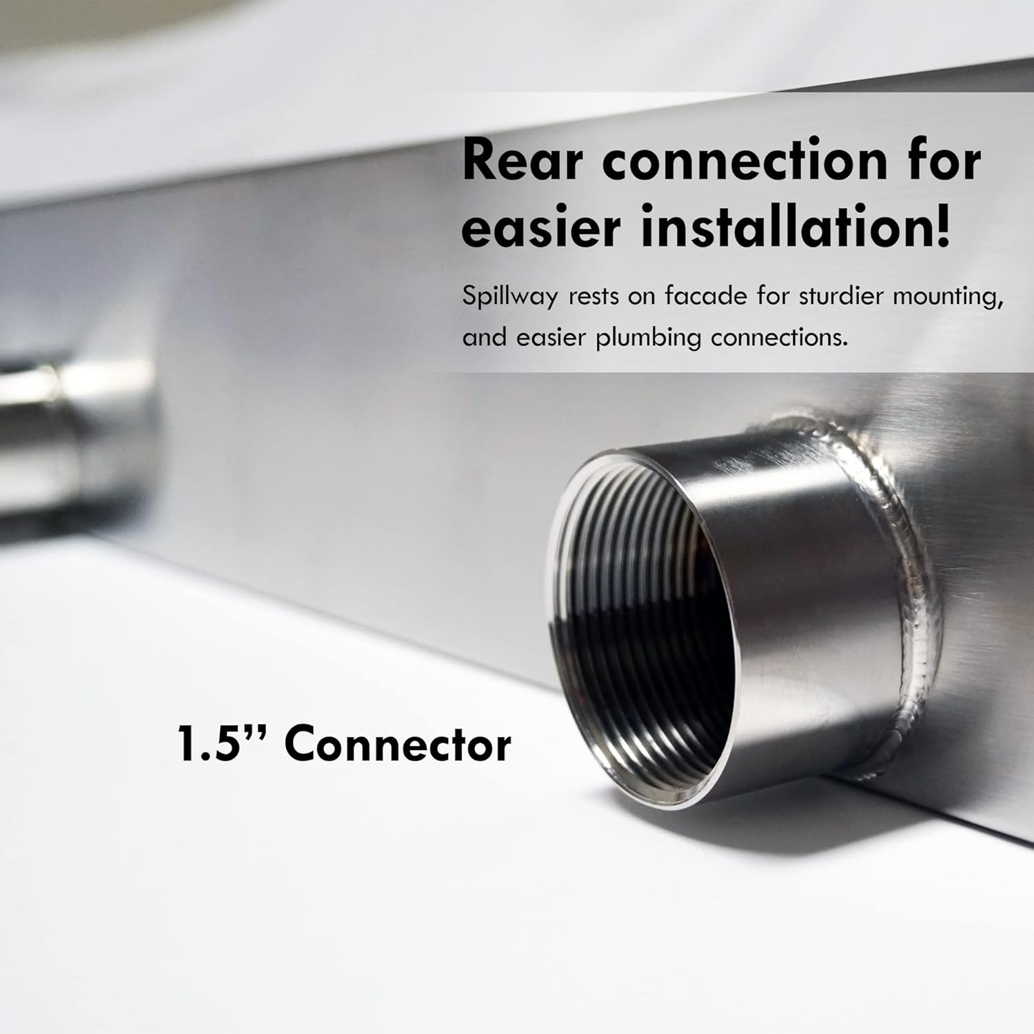• Water inlet is One (1) 1.5" Female Thread Located on spillway center back. We recommend 1000 GPH per foot of spillway length for proper flow