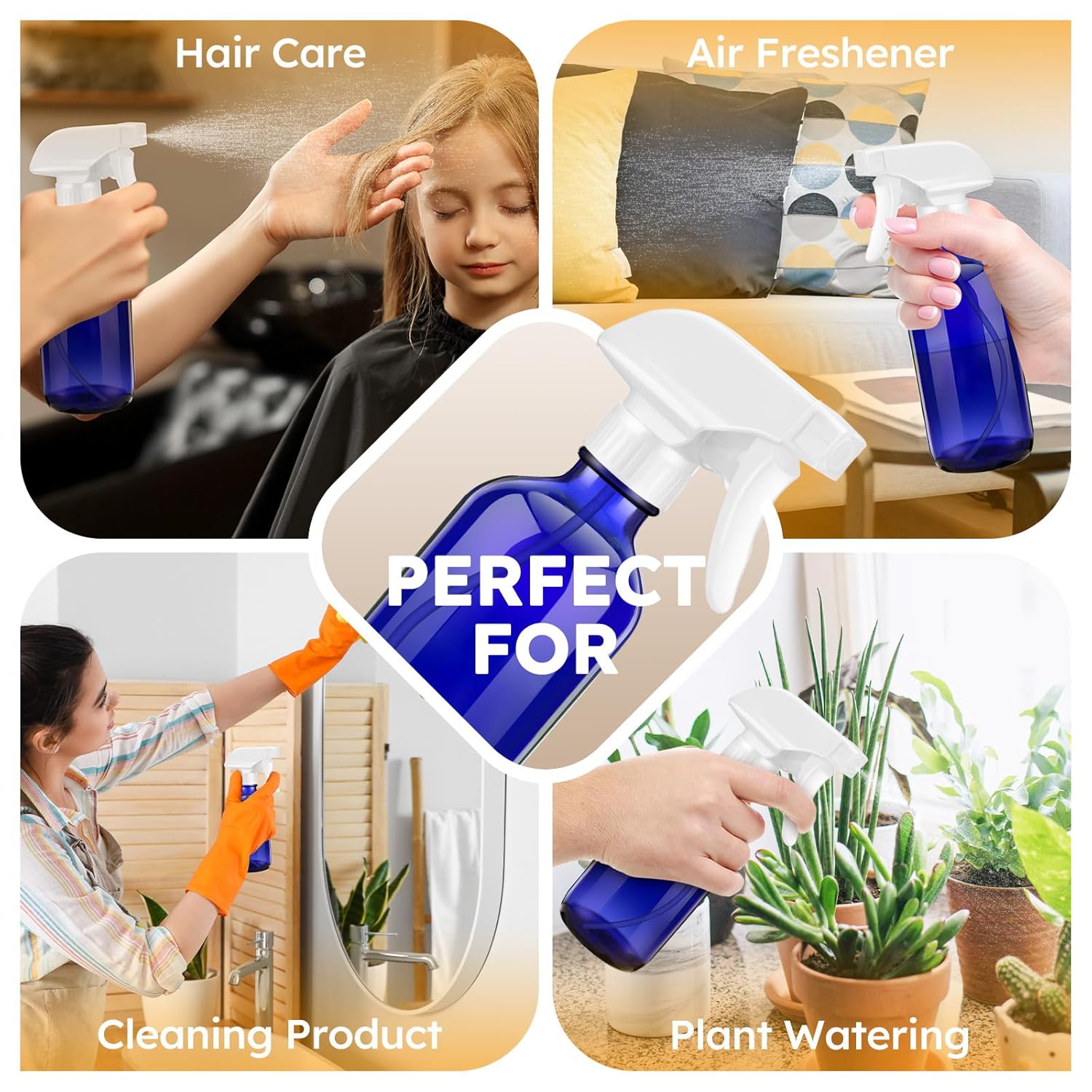 • For Protection : The natural blue glass bottle protects against harmful UV rays and protects sensitive essential oils, detergents and bleach mixtures.The BPA-free materials keep your families safe from chemicals as well.