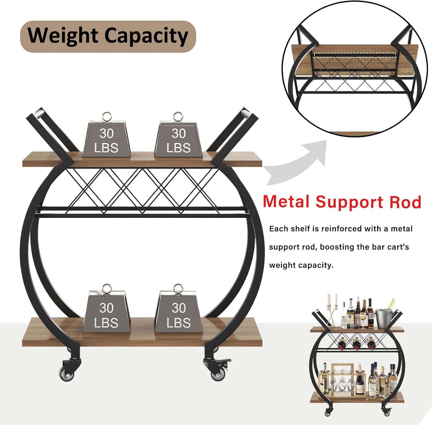 • 100% Satisfaction: With instruction and accessories included, you will never get stuck with the rolling bar cart assembly jobs. LVB has a professional customer care team that is willing to answer your questions before and after your purchase!