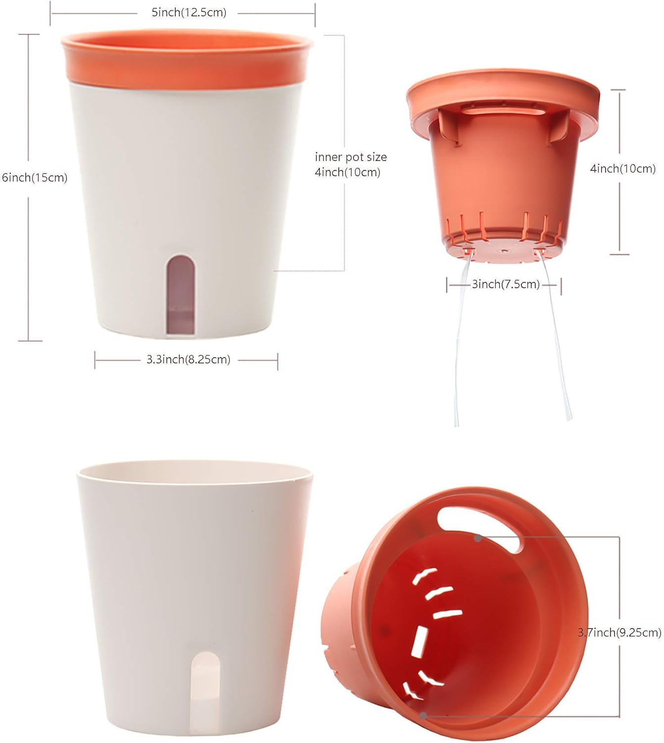 • 5, Include 6 planters: 3 round flower pots of 5 inch diameter, height is 6, 3 11 inch long rectangular flower pots, size: 11" x 4.7" x 5.5" (Length x Width x Height) Note: Plants are not included, only for demonstration purposes.