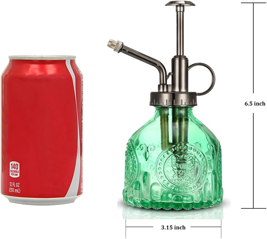 • 【Versatile Use】- This vintage style plant spritzer mister bottle can be used as kitchen cleaner spray, window cleaner spray, pet cooling spray, barber spray, travel accessories, office decor and balcony decor. These glass water bottles are perfect garden tools.