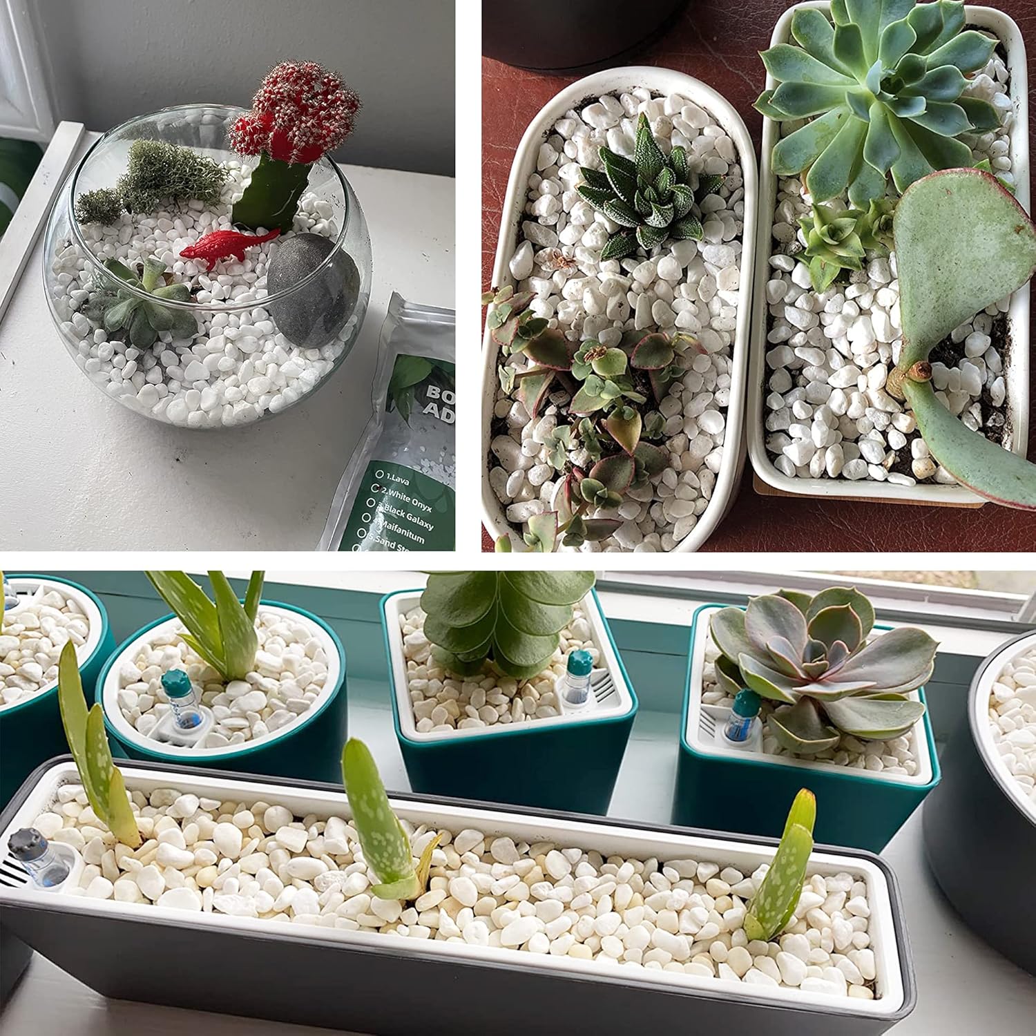 • 🌷【WIDE USES】Common applications include succulent containers, potted plants,vases,cactus,bonsai,landscapeand terrariums.It is perfect for home decor and a creative interior and exterior design. The possibilities are endless with these floral arranging white gravel rocks!