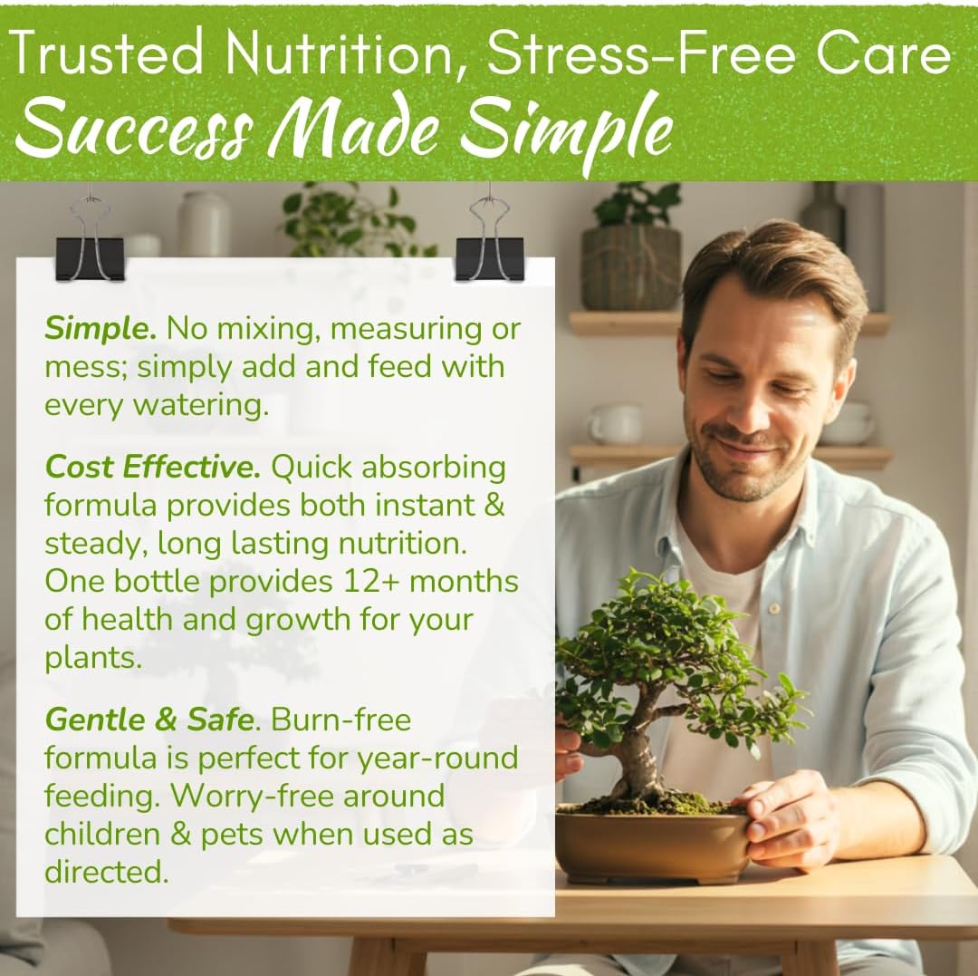 • ⭐ EFFORTLESS NOURISHMENT: No mixing, no measuring, and zero cleanup required. This formula is gentle enough for consistent use during every watering session—just dilute one teaspoon in a cup or more of water for your bonsai's rejuvenating soak.