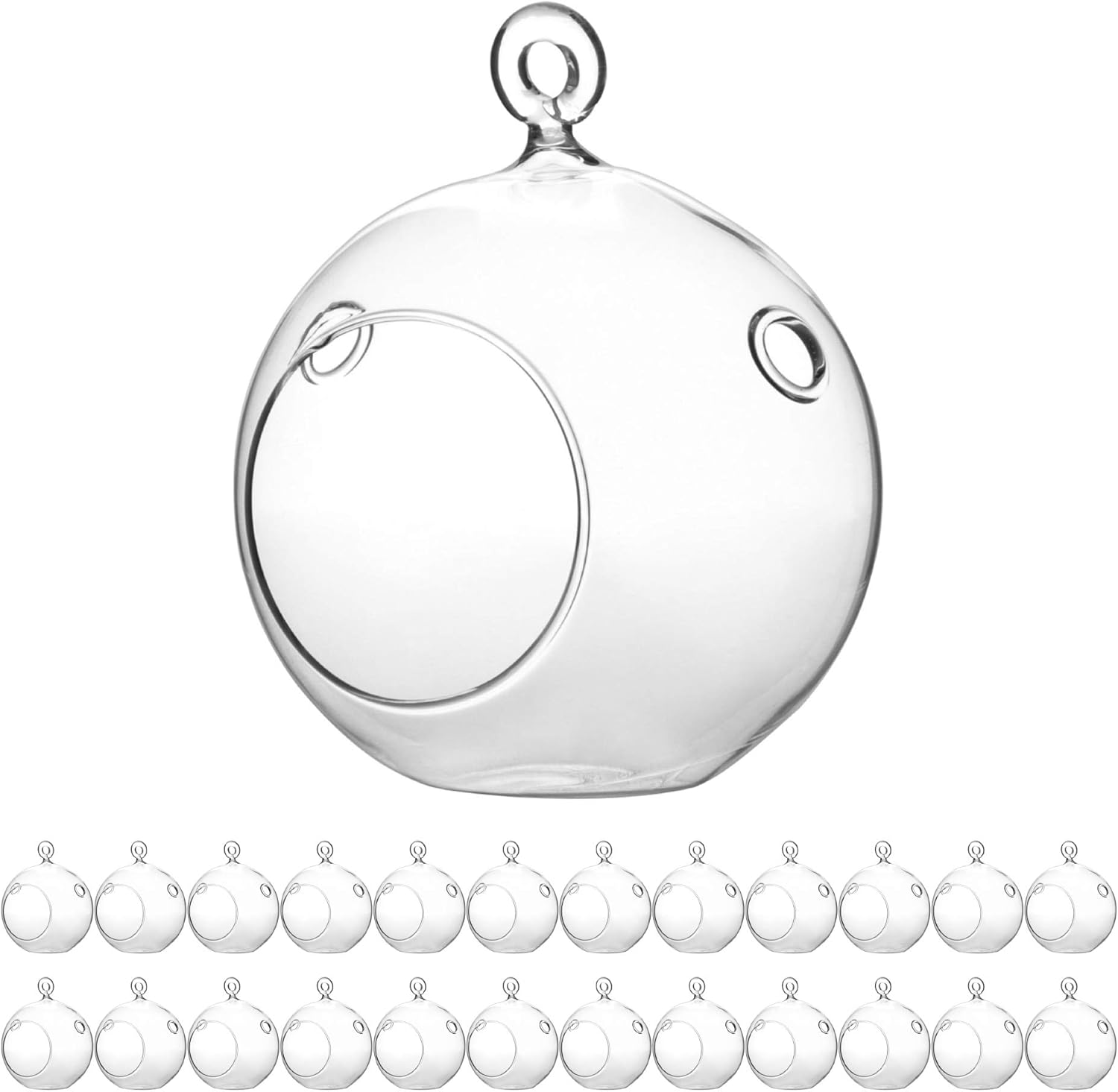 WGV Hanging Terrarium Globe, Width 4", Height 4.75", DIY Air Succulent Planter, Clear Glass Vase Orb with Flat Bottom, Candle Holder for Windowsill Outdoor Garden Decor, 24 Pieces Bulk