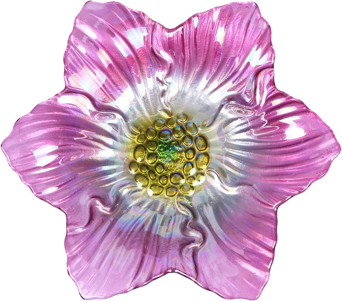 • Bird bath is designed with handmade glass painted with beautiful pink pattern, and metal stake base is upgraded to four-pronged bottom, which greatly increases the stability of birdbath