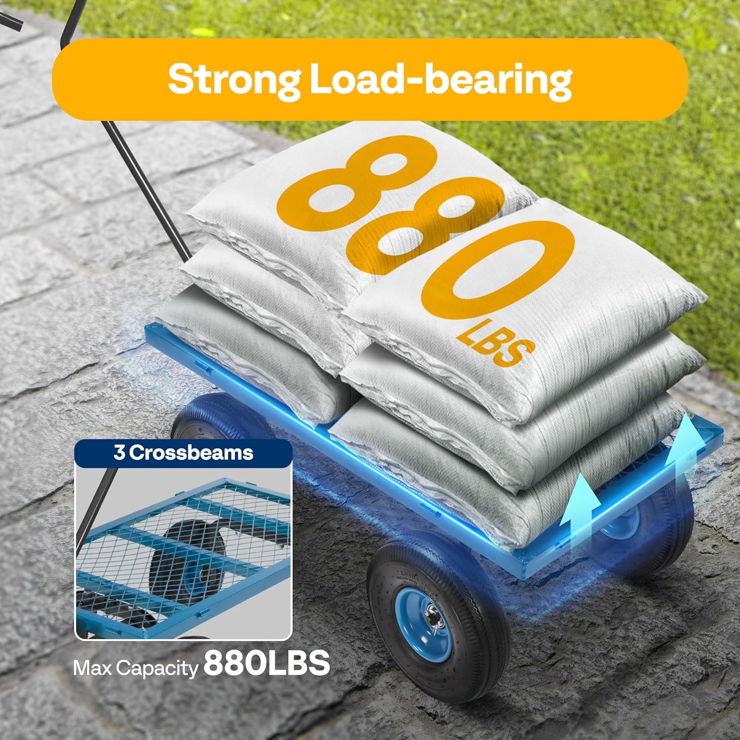 • POWERFUL LOAD AND LARGE CAPACITY - VIVOHOME's multi-functional garden cart has meticulous workmanship and strong design sense; Its maximum load can reach 880 lbs., which is more than twice that of competitors; there's nothing you cannot pull away with this practical and convenient cart (to prolong its life, long-term heavy loading is not recommended)