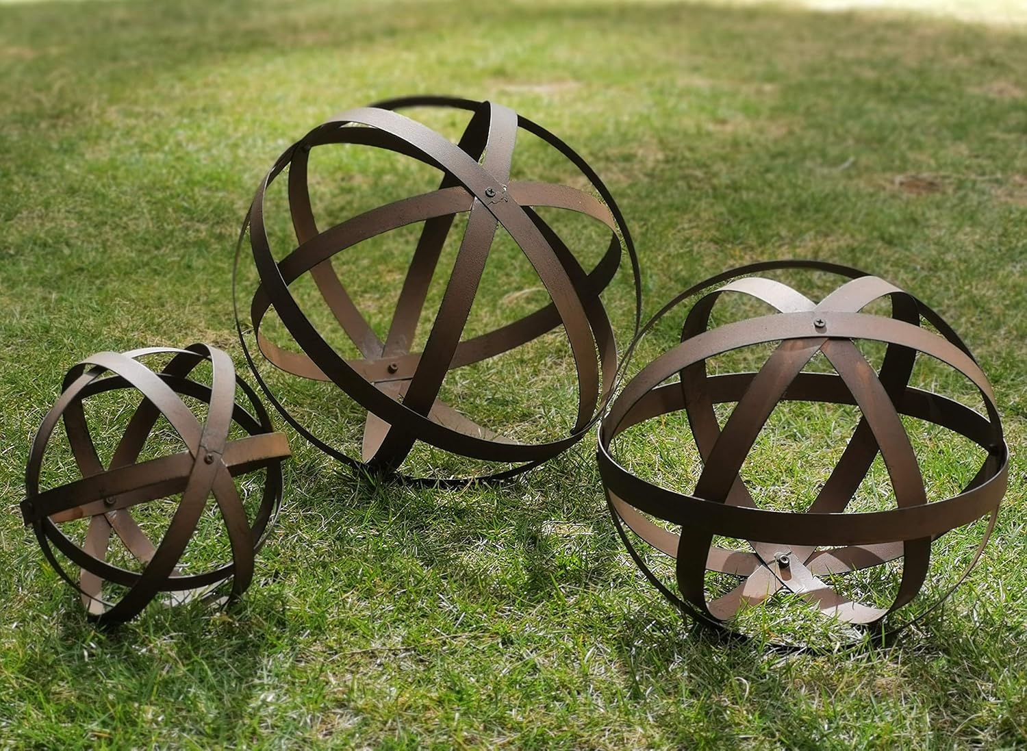 • Read before buying: the decorative sphere POSSIBLE smaller than you expect, Small sphere 7.15" Dia, Middle 9.9"dia, big one is 11.9" dia inches, Metal Sphere in Rusty Finishing effect (not real natural rusty).