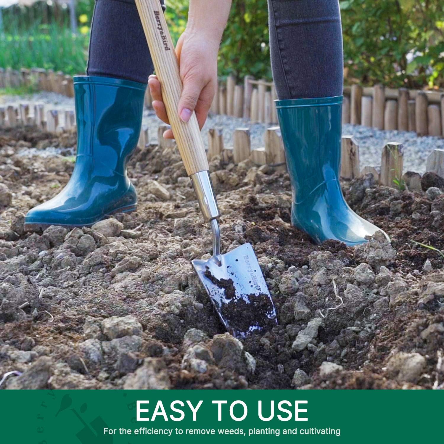 Berry&Bird Garden Trowel with Long Handle, 23.43in Stainless Steel Short Shovel with Wood Handled for Digging, Gardening, Transplanting, Planting and Weeding