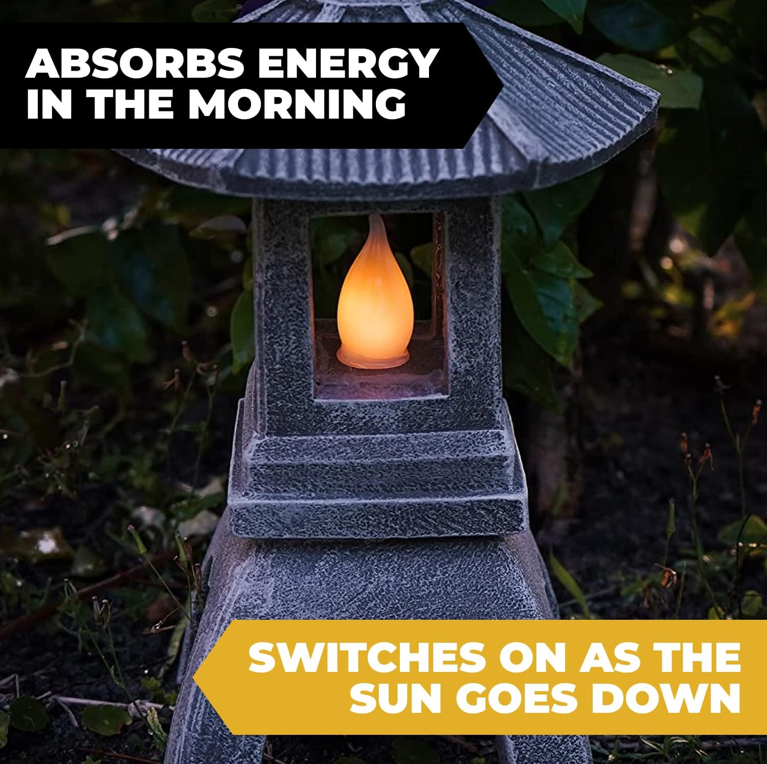 VP Home Pagoda Garden Statue, Solar Powered Statue Japanese Garden Decor, Outdoor Zen Garden Lantern, Flickering LED Garden Light (Tranquil Pagoda)