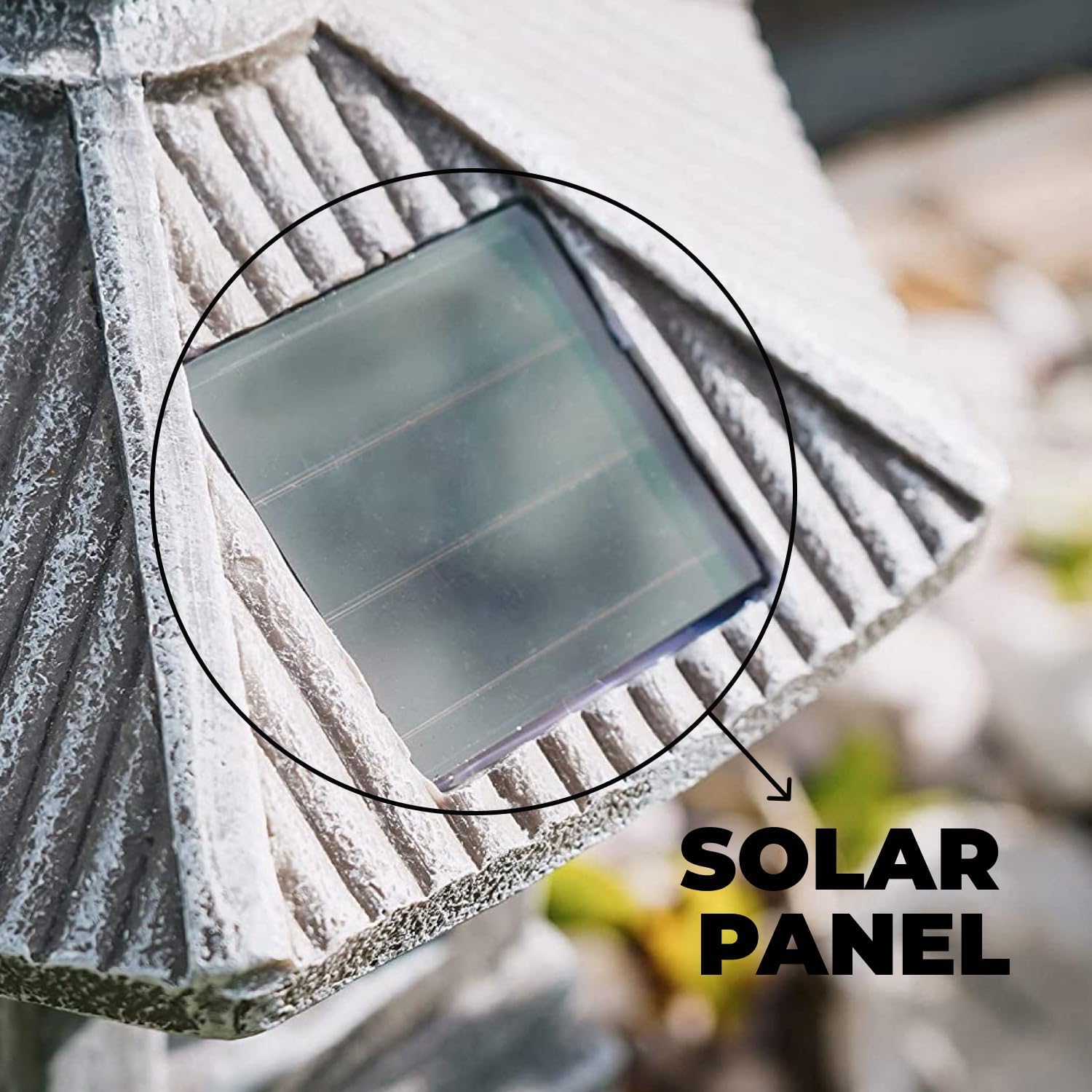 • Solar Pagoda Statue: Unveil a garden spectacle By day, the solar panel soaks up sunlight, and by night, it casts a beautiful glow, creating an enchanting ambiance that enhances your outdoor oasis.