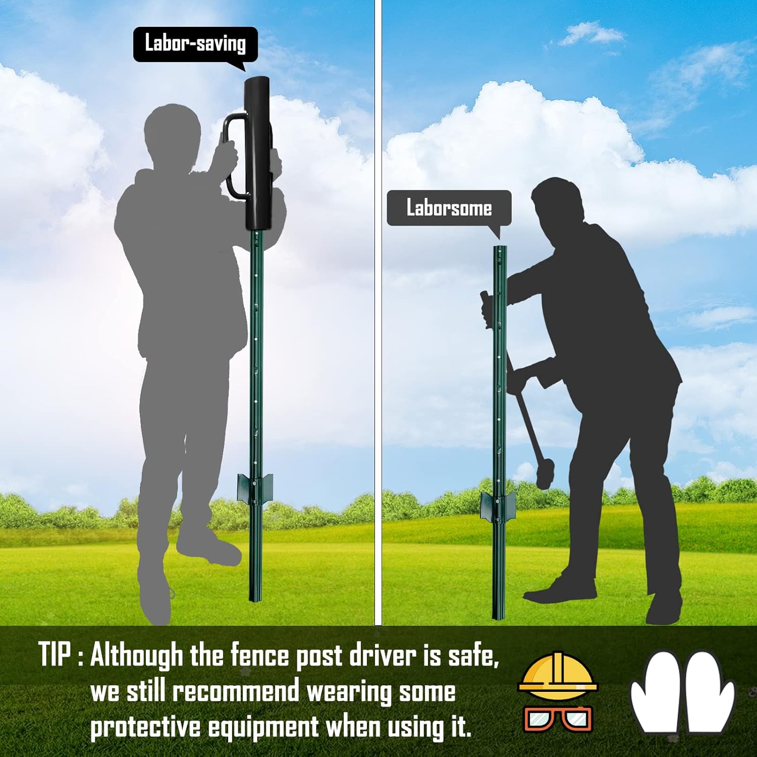 • 【A GREAT HEAVY DUTY TOOL】This high-quality fence post driver makes it easy for you to drive wooden fence posts deep into the ground. It is a great tool to designed to drive t-post, wood, metal or any type of fence posts
