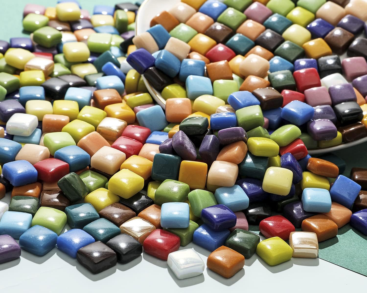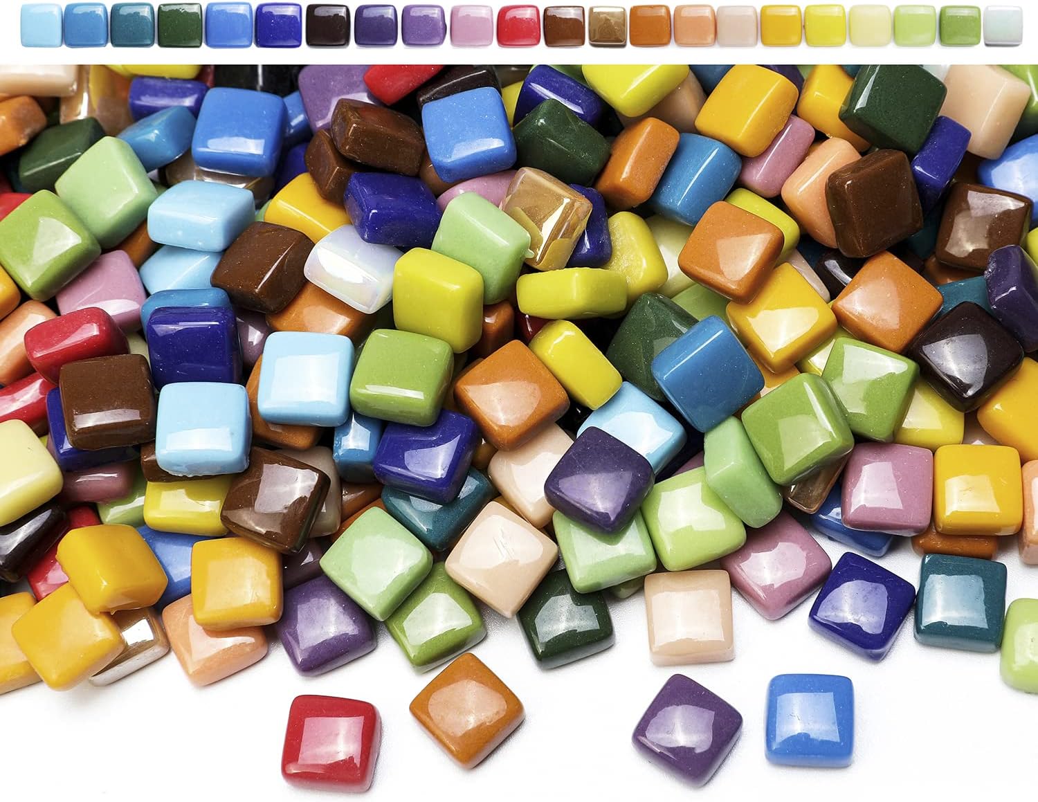 Lanyani 2 Pounds Vibrant Glass Mosaic Tiles for Arts and Crafts, Colorful Bulk Loose Mosaic Glass Pieces Square Stone Tiles, 1/2 inch, 500 Pcs