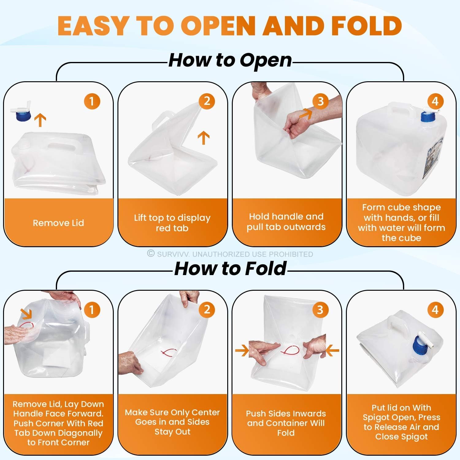 Collapsible Water Container with Spigot, BPA Free, Food Safe Camping Water Storage Cube Jug for Outdoor Hiking Hurricane & Emergency Survival Kit, Portable Foldable Canteen