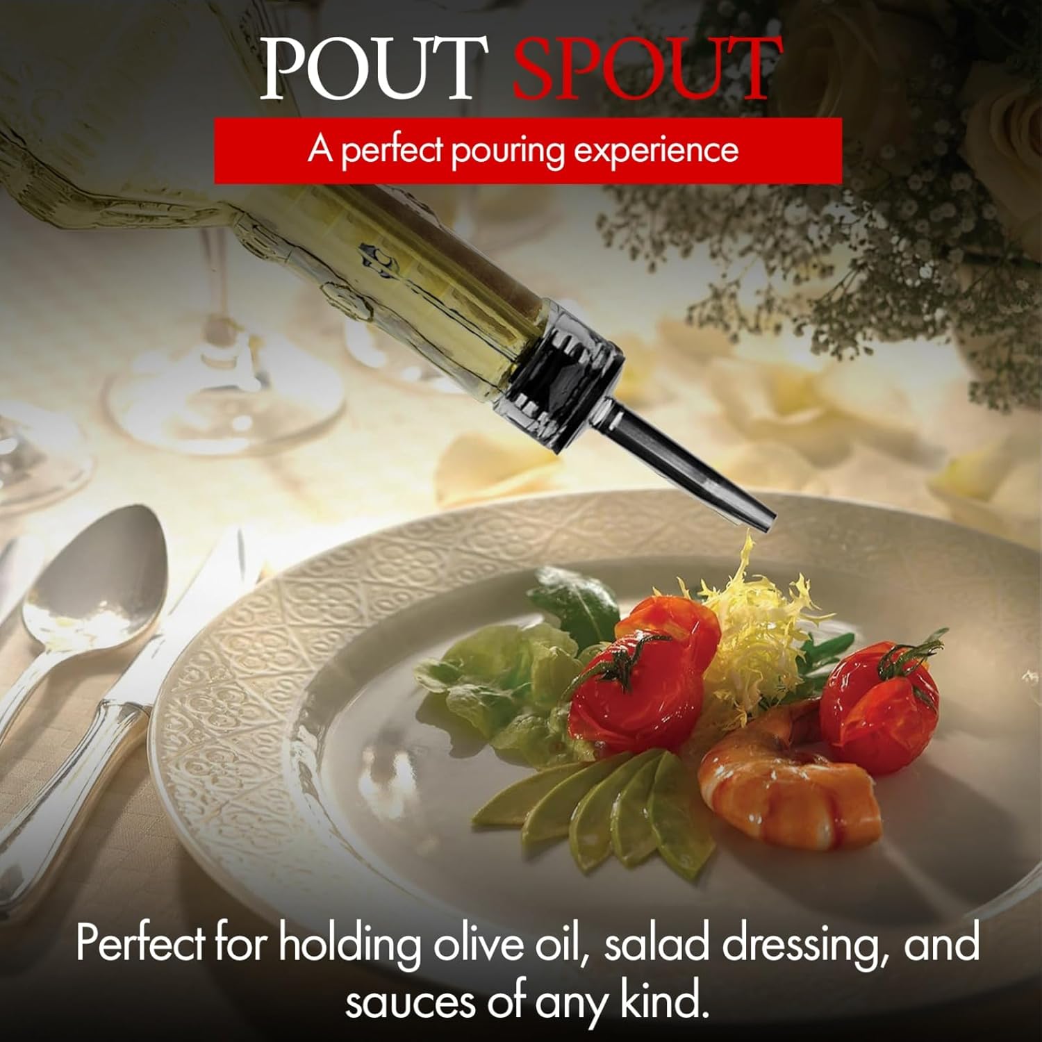 • Kitchen and More. The large 3in(7.6cm) X 11.9in(30cm) bottle size is great for kitchen use. Perfect for holding olive oil, salad dressing, and sauces of any kind. Includes a stainless-steel pout spout with a dip- free top to ensure a perfect pouring experience while cooking or eating. Olden-style restaurants love using these bottles as dressing bottles. The bottle can also be used as decoration around your house, bar, or office. Also use the bottle for art projects.