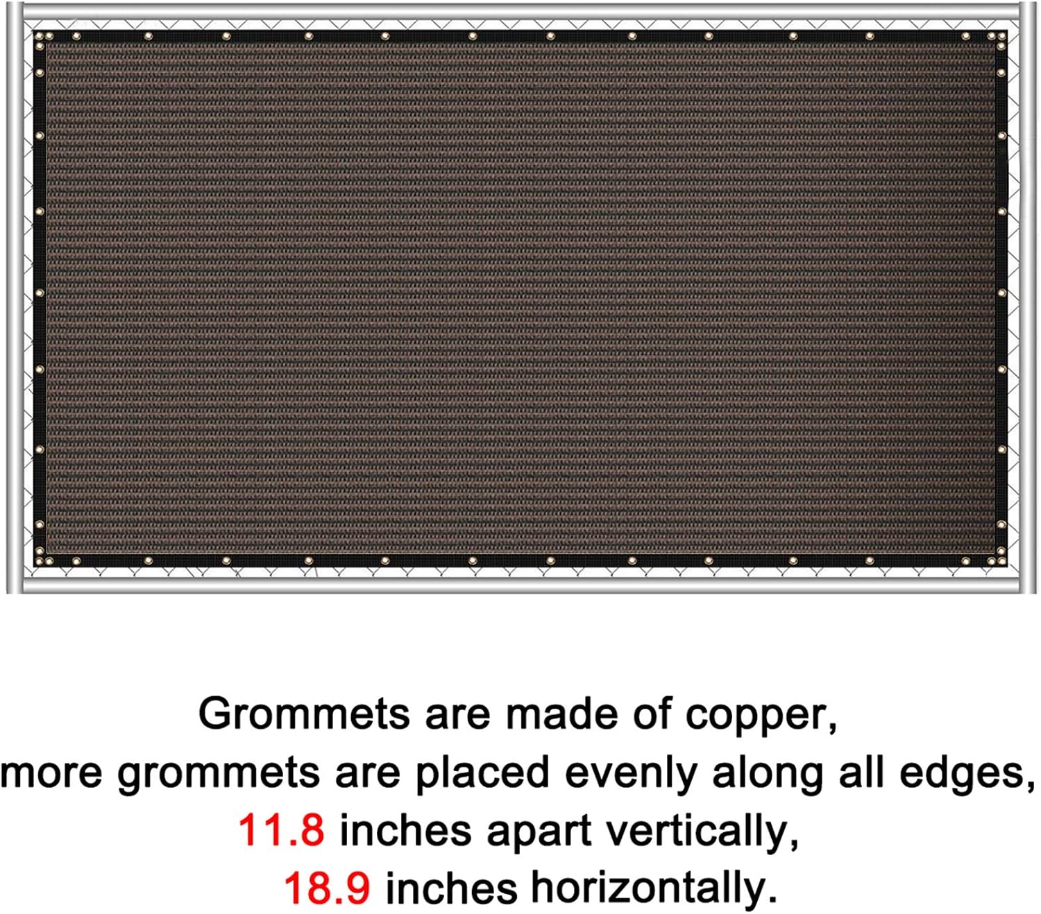 • More intensive grommets: Grommets are made of copper, more grommets are placed evenly along all edges, 11.8 inches apart vertically, 18.9 inches horizontally. All edges are covered with black reinforced 1.3" binding. The grommets and bindings help the screen to hold up in the wind.