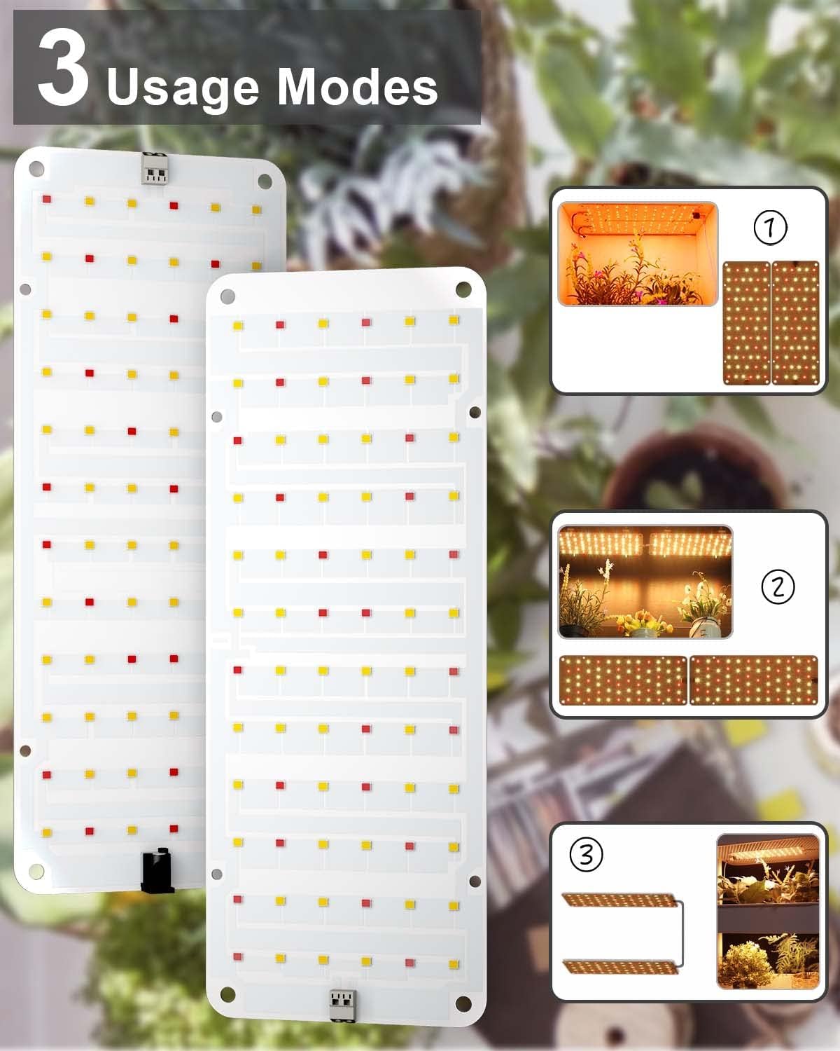 • Less Heat & Hight PPFD- 2pcs ultra-thin grow light panel at size 10.1 x 3.9 x 0.07 inches, uses an aluminum backer board with low heat generation. The LED grow lights for indoor plants consume only 20W with 132 LEDs, making sure over 95% of light energy can be absorbed by your indoor plants.