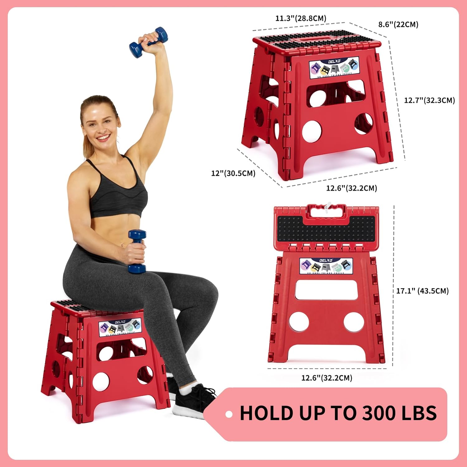 Delxo Folding Step Stool,Non-Slip Stool 13 inch Height Premium Heavy Duty Foldable Stool for Kids and Adults,Kitchen Garden Bathroom Steppingstool 1 Pack in Red,Dotted Texture