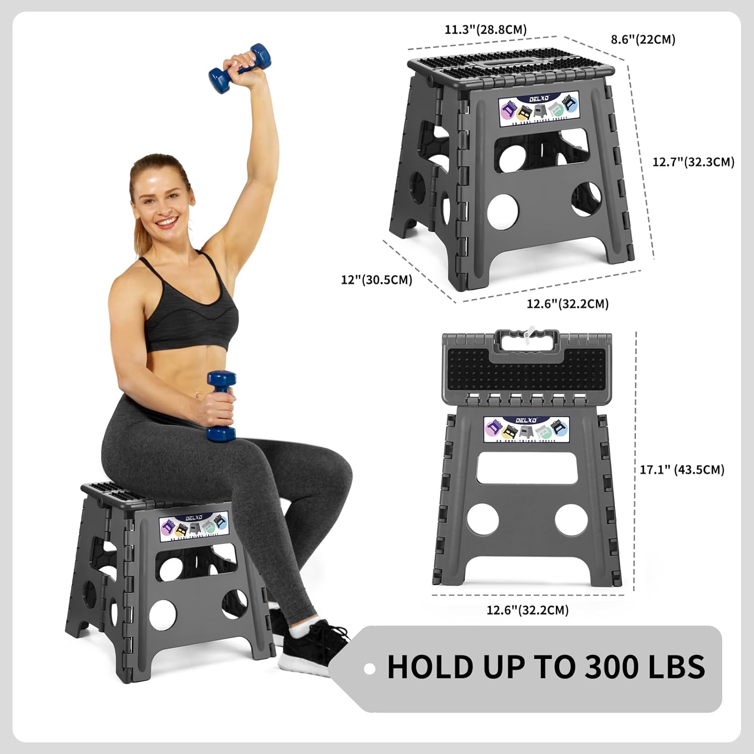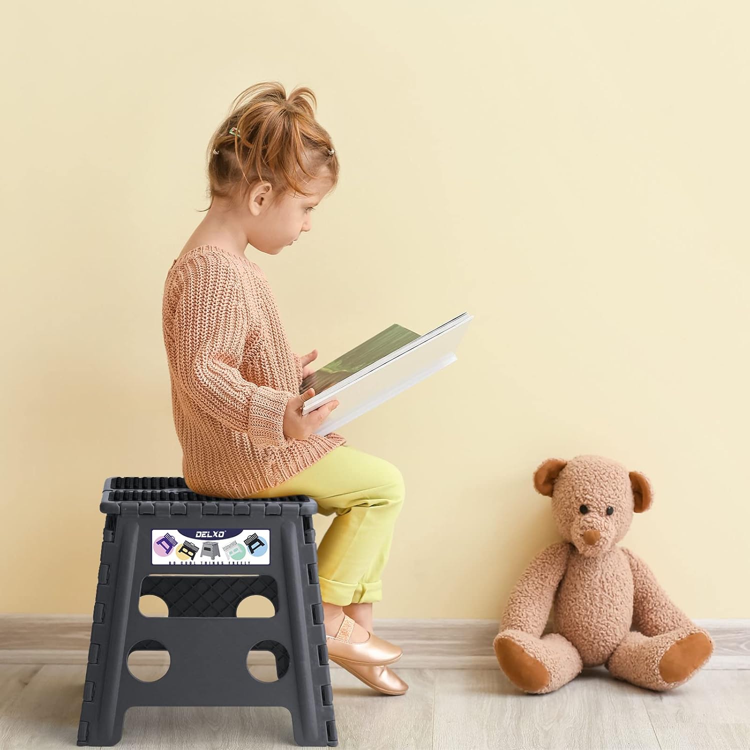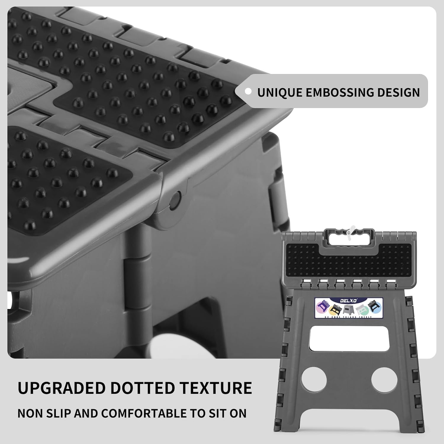 • Safe Upgrade Step Stool : Delxo have designed a safety stop gap feature that allows the foldable stool to prevent being squashed, great for adults. Four round corner super safe protect your body from clashing. All of this design is put your safe first