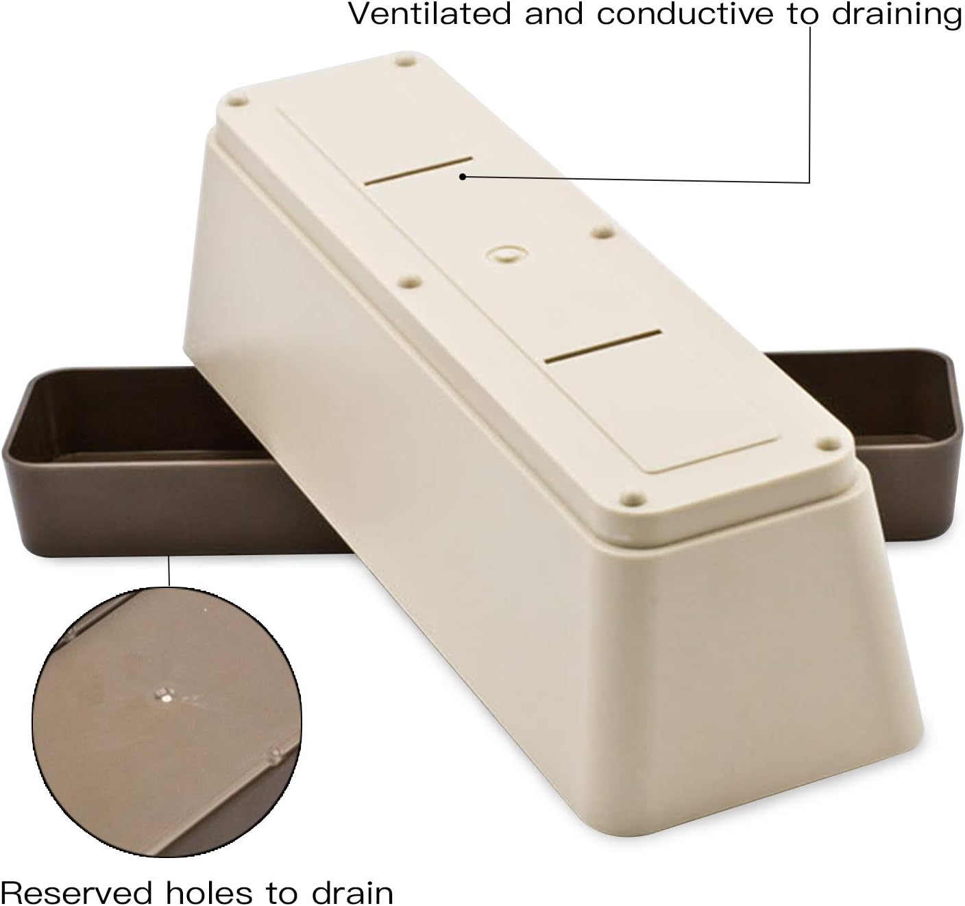 • Drainage Holes & Detachable Saucers- The plastic planter have 2 opened drainage holes and 2 reserved holes to keep excess water and soil drained, and providing proper airflow to keep plant breathe easily and keep root grow healthily. The detachable saucer helps to collect excess water and soil spillage. This window planter box is easy to clean