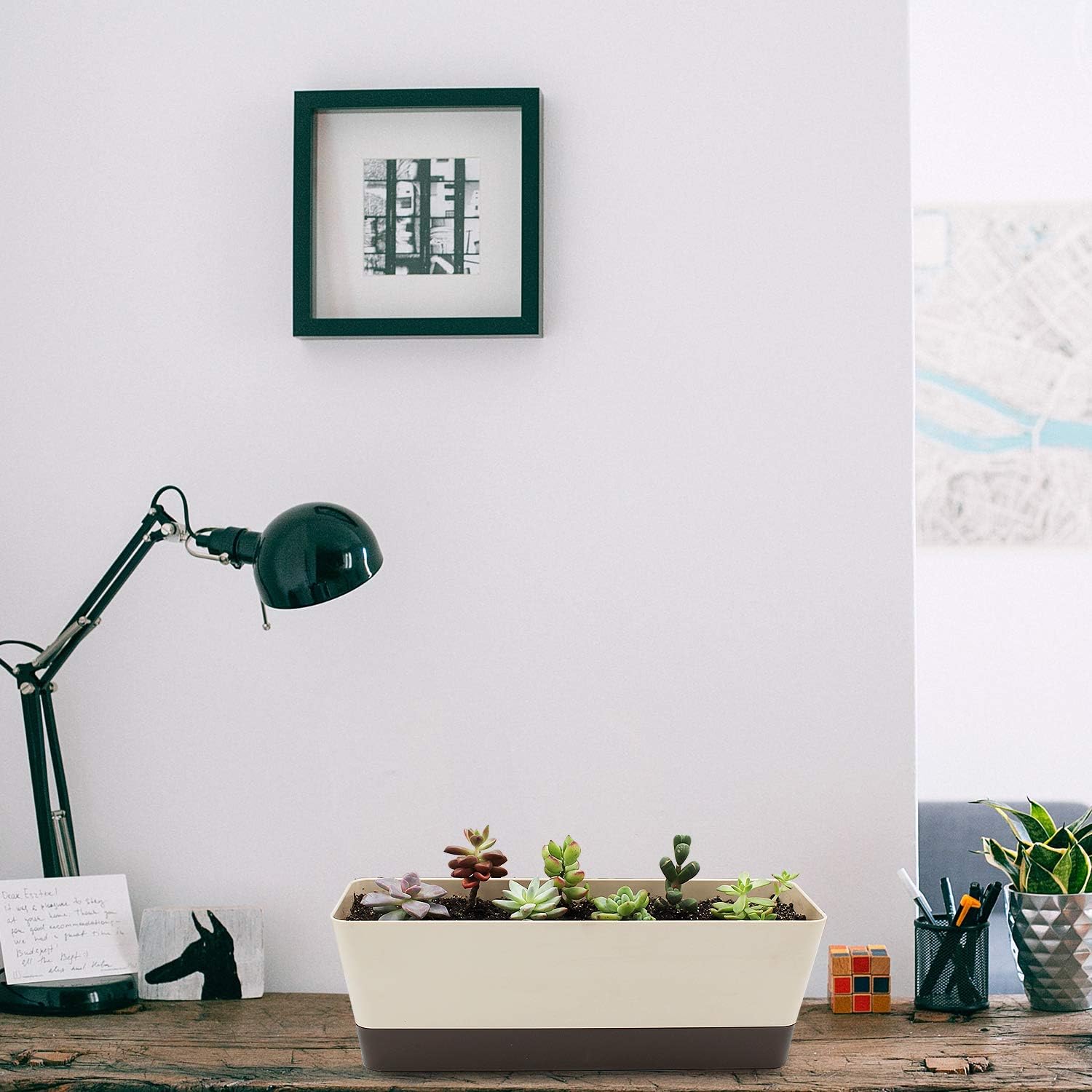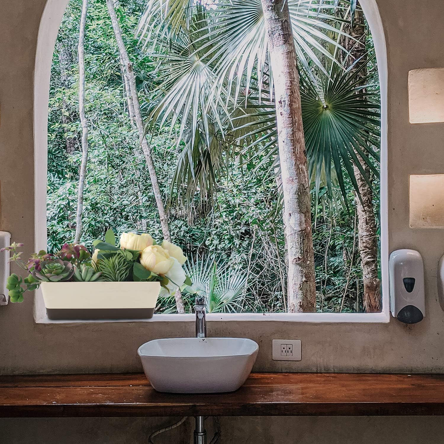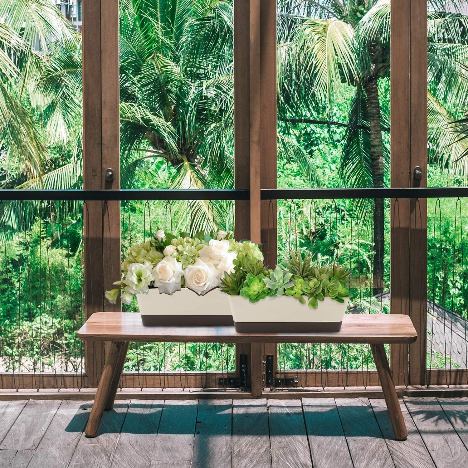 • Lightweight, Simple and Decorative- Each rectangle planter measures 12 x 3.8 x 3.3", and the saucer measures approx. 11.2 x 3 x 1.2". These window flower boxes are perfect for planting vegetables, succulents, cactus, herbs, flowers and more. Beige color can match any home decor perfectly, these succulent planters are great for placing at indoors and outdoors