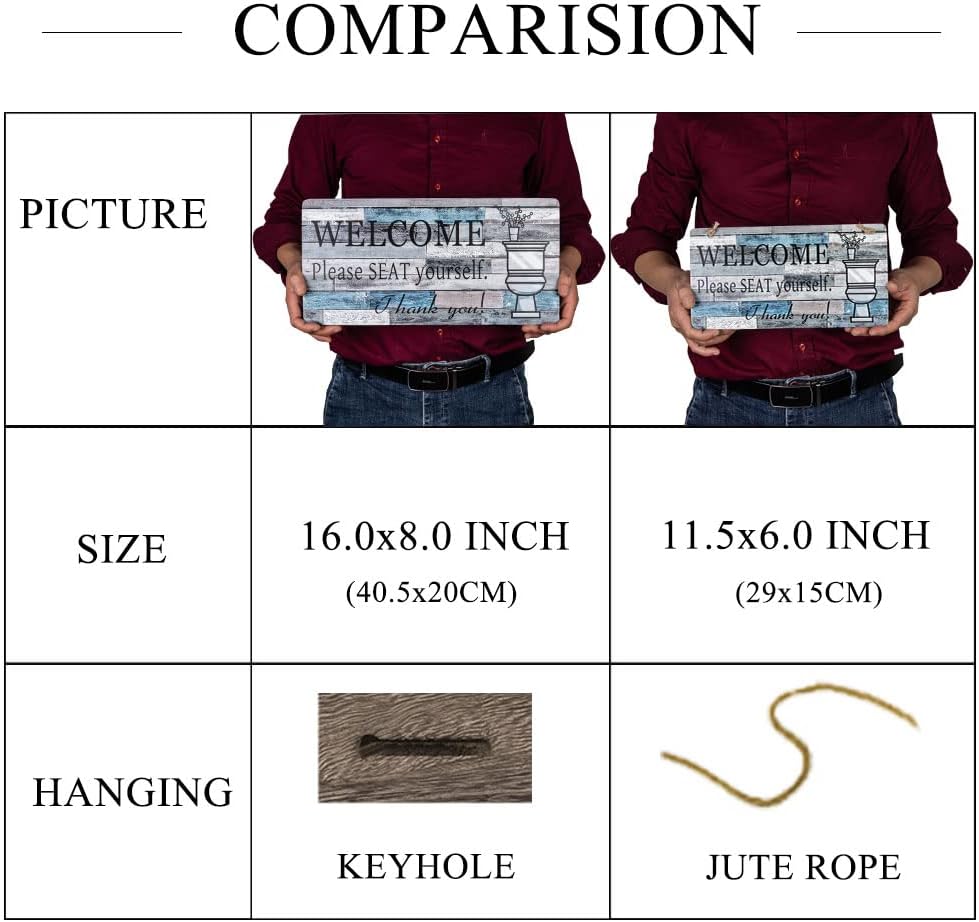 • ✓ [Perfect Size Decorative Plaque] - The bathroom signs measures about 16 inch width and 8 inch height, goes perfect on the wall just above the toilet.