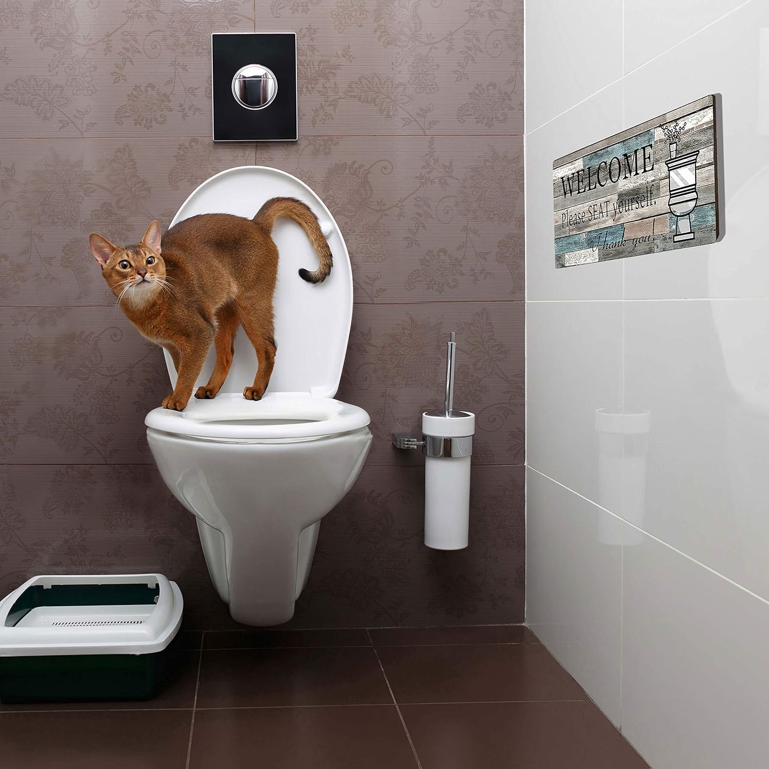 • ✓ [Cute Bathroom Decor] - Cute sign reads "Please Seat Yourself", perfect to fill wall space and adds a little bathroom humour for the bath, always brings a smile.