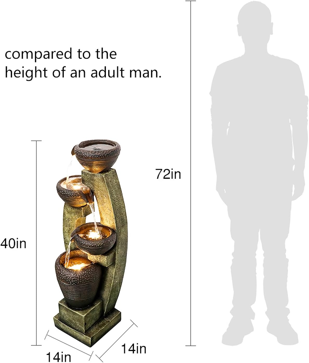 • With the suitable size 14" L x 14" W x 40" H for indoor or outdoor décor. The modern cascading bowls water fountain will add instant beauty to your surroundings.