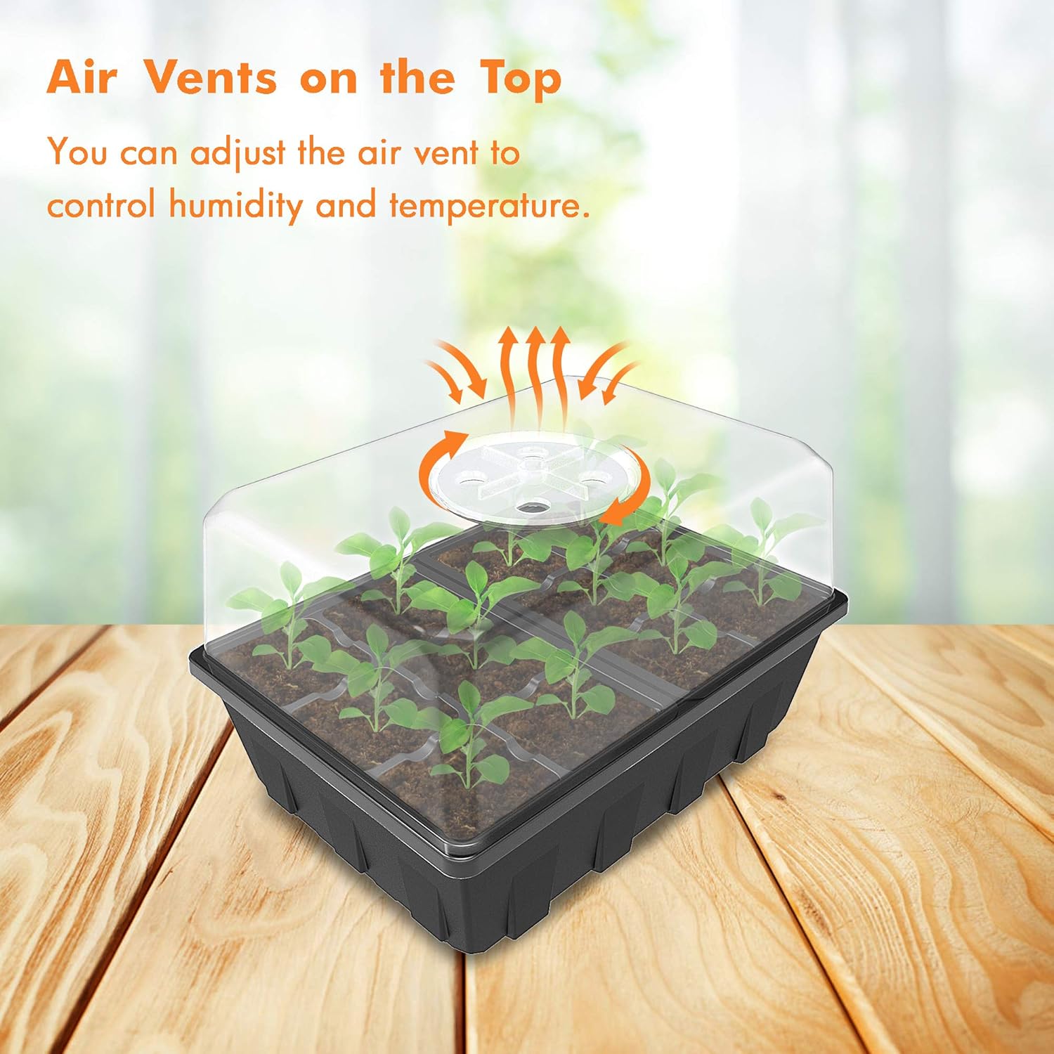 • Vented Humidity Dome - Our seed starter kit comes with an adjustable humidity dome, allowing you to easily control the humidity and temperature levels for optimal seed germination. With ventilation holes, it is easy to control the airflow and maintain the ideal growing environment for your seeds.