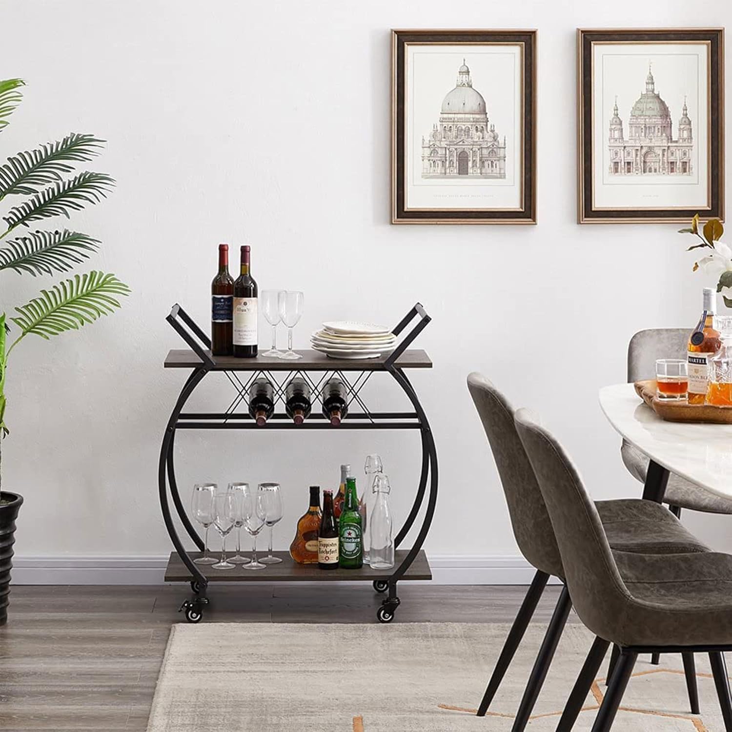 • Spacious Shelves to Hold More Items and Utility Bar Cart with Wine Rack to Prevent Oxidation: The industrial coffee cart table is designed with spacious tabletop and 2 tiers shelves to hold your coffee maker, wine and snacks for parties. Comes with a wine rack which hold up to 3 bottles of wine horizontally to keep the cork wet and prevent oxidation.