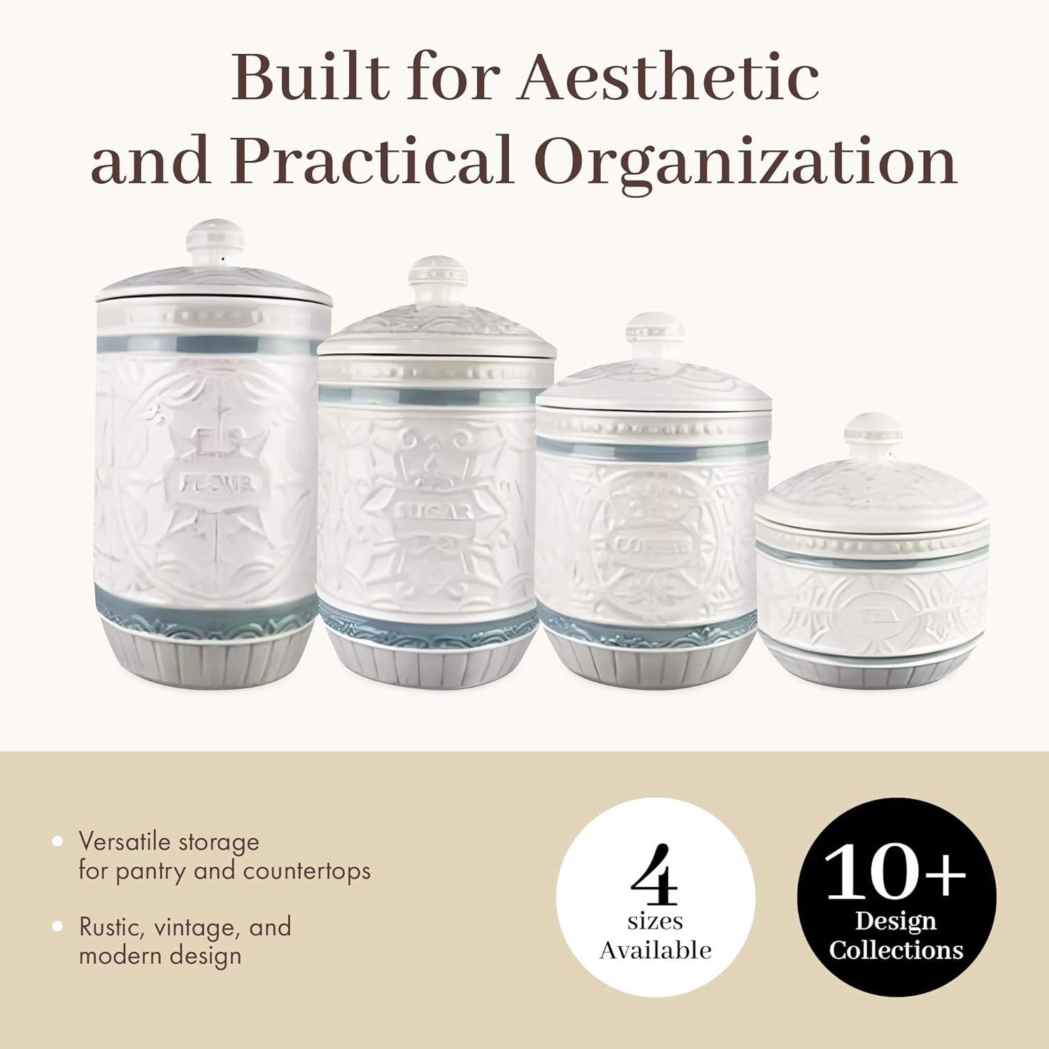 Young's Inc. 4 Pcs Set Casual Provincial Ceramic Canisters- Storage Container for Kitchen and Bathroom - Beautiful Home Decor Accent to Store Food, Coffee, Tea, and More - Green, White