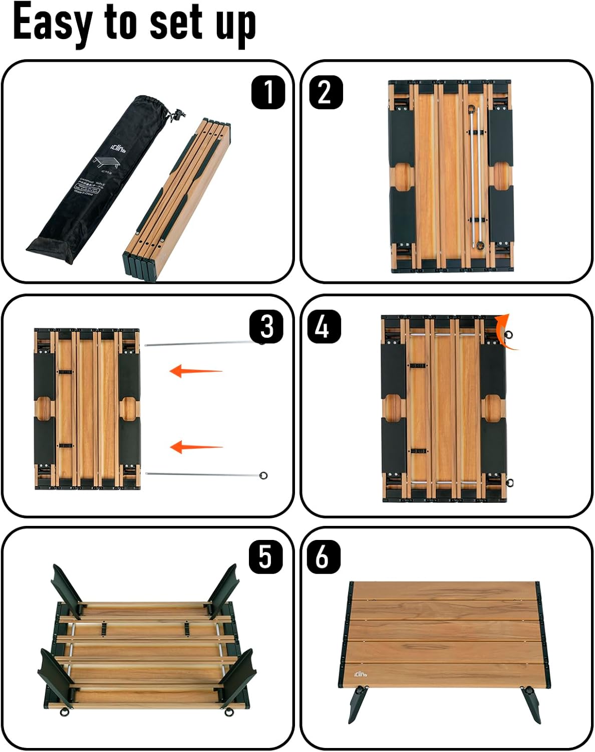 • Compact, packed size 22.4 × 3.78 × 2.36 inches; carry bag included, easy to carry everywhere; Very easy to set up, just open the base frame and fix them with the bars, enjoy your leisure time in seconds; Perfect height and size for drinks and snacks when relaxing on your camping chairs, have a picnic in the garden, as a beach table, go fishing, have breakfast on the bed.