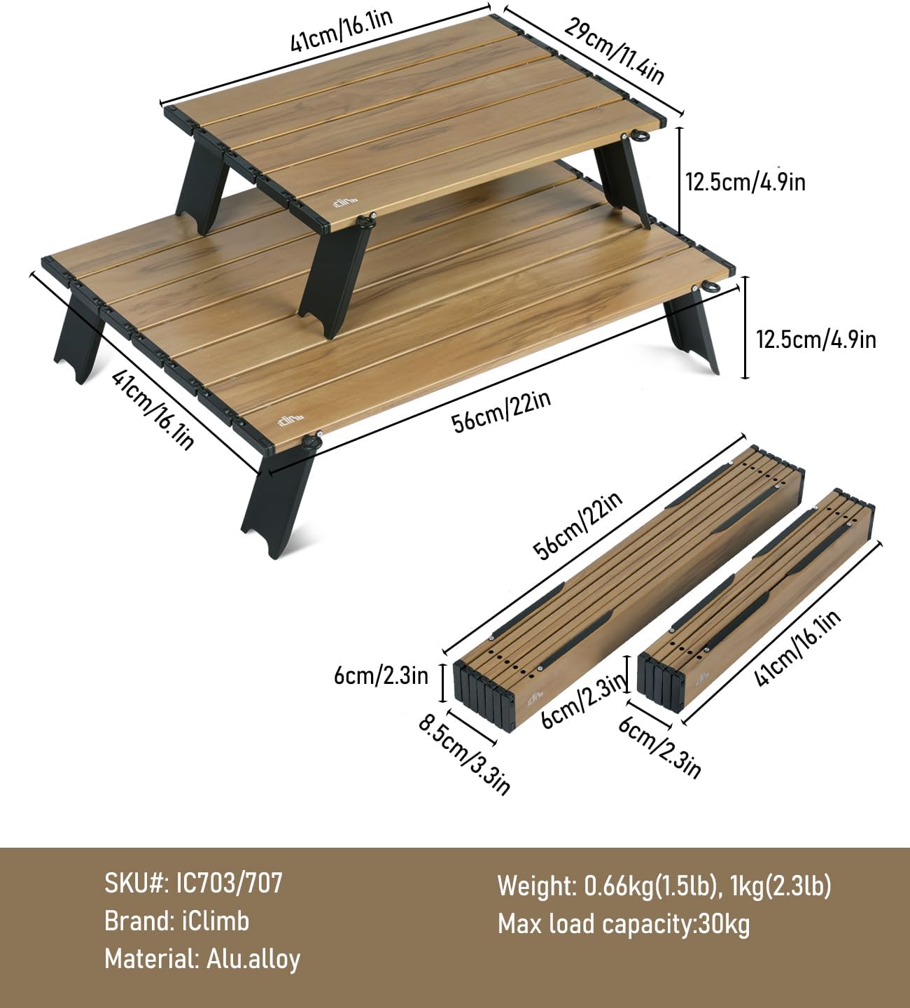 • Ultralight, made of high quality aluminum alloy 6063, only 2.4 lbs; Max Load 66 lbs; Unlike wooden or nylon-top tables, this table is durable, waterproof, corrosion-resistant, easy to clean; Heat resistant, can put your stove on