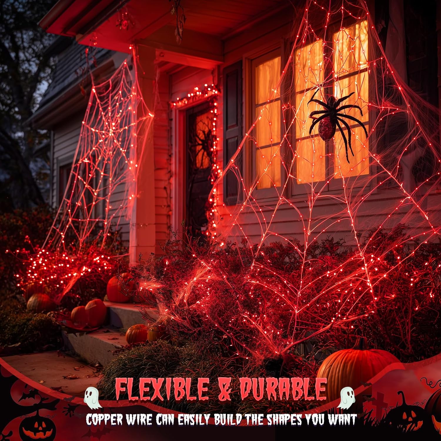 • 【2 PACK HALLOWEEN SOLAR LIGHTS】100 LED bulbs on 32.8 feet copper wire, with a steady 360-degree viewing angle, ideal for decorating your gardens, patio, yard, deck, stage, holiday, etc. What's more, in the dark, the wire fades invisible, leaving only the bright red fairy lights, creating a Joyful ambiance to Christmas decorations.
