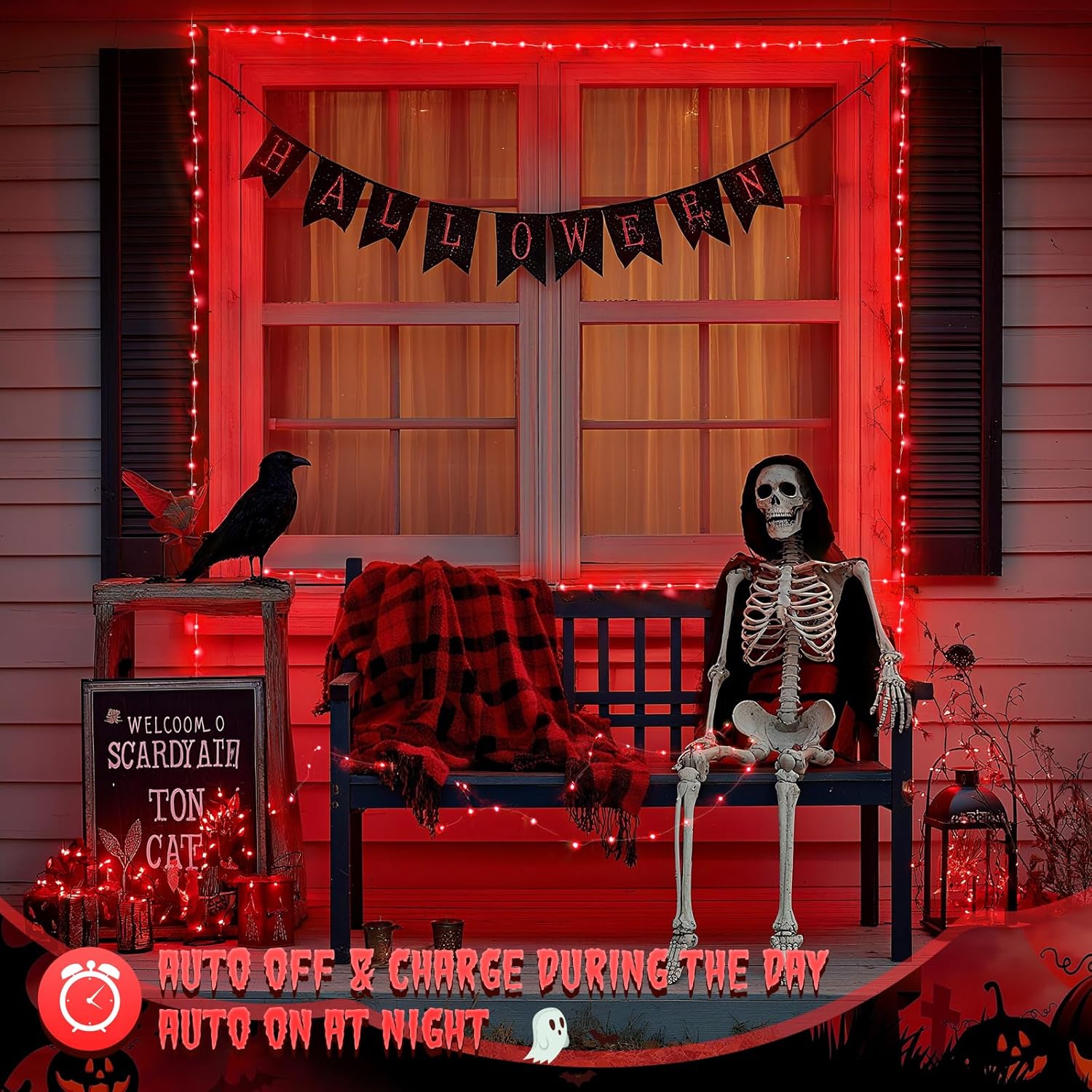 • 【FLEXIBLE & DURABLE RED LIGHTS OUTDOOR】You can bend the flexible silver wire into a heart shape or pentacle and you can wrap the halloween solar lights around tree trunks or gazebos. Solar fairy lights will not overheat after being used for many hours, durable, and safe to use.