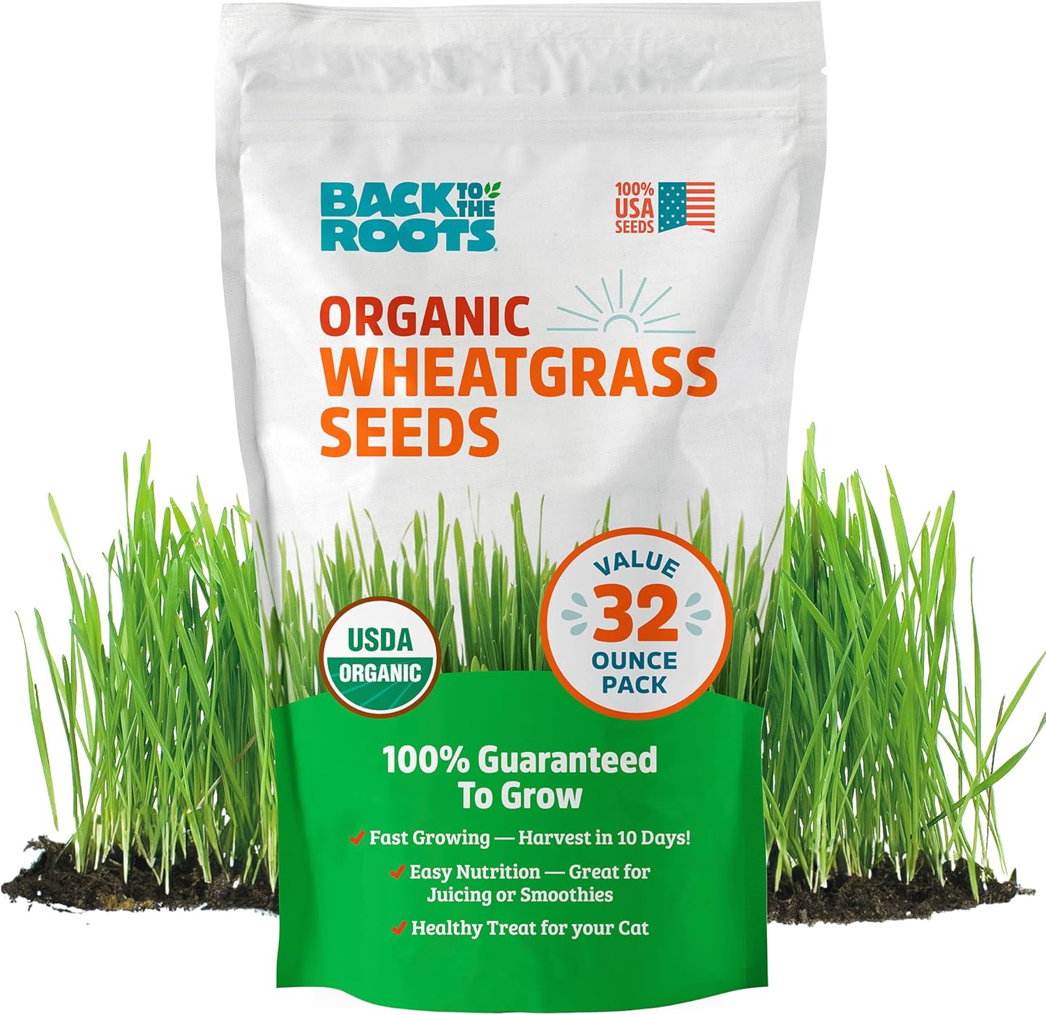 Back to the Roots Organic Wheatgrass Seeds – 2lb Non-GMO Value Pack; Great for Growing Nutritious Wheatgrass, Also Catgrass (Natural Hairball Remedy for Cats)