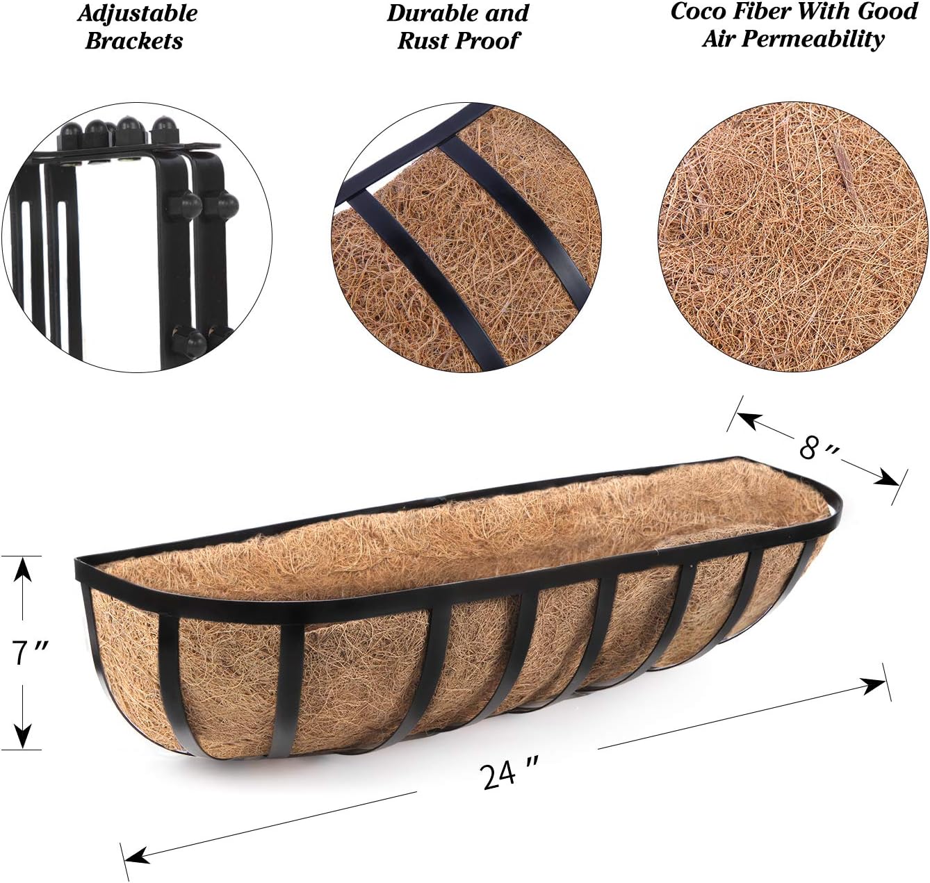 • GOOD DRAINAGE PERFORMACANCE: The flower box comes with natural coco liner that hold fertilizer soil in the planter but let water and air circulate; extends the life of your living flowers, grass, succulent, cactus plants.