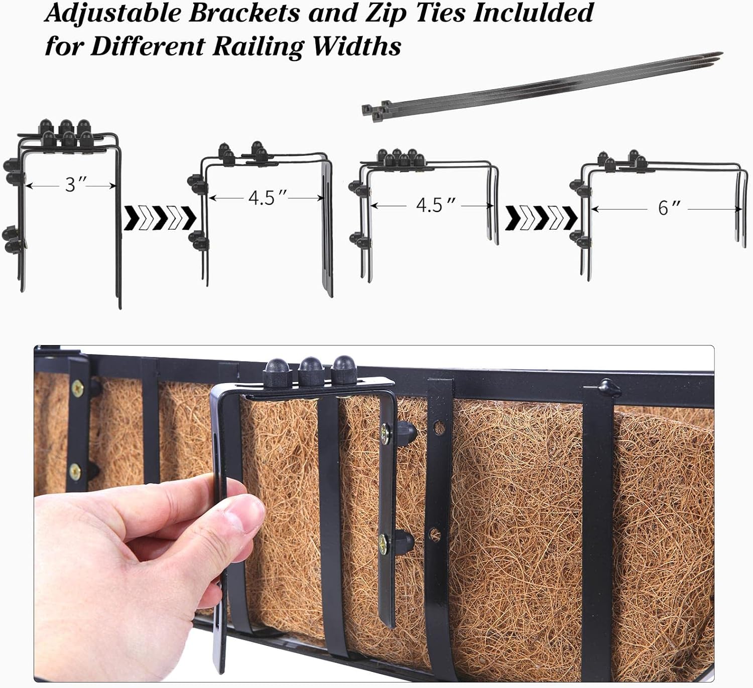 • EASY TO USE: Comes with adjustable brackets that make it easy to hang over any railings measuring 3 to 6" wide; zip ties included for other railings and fences; may also be screwed directly to the wall or window sill.