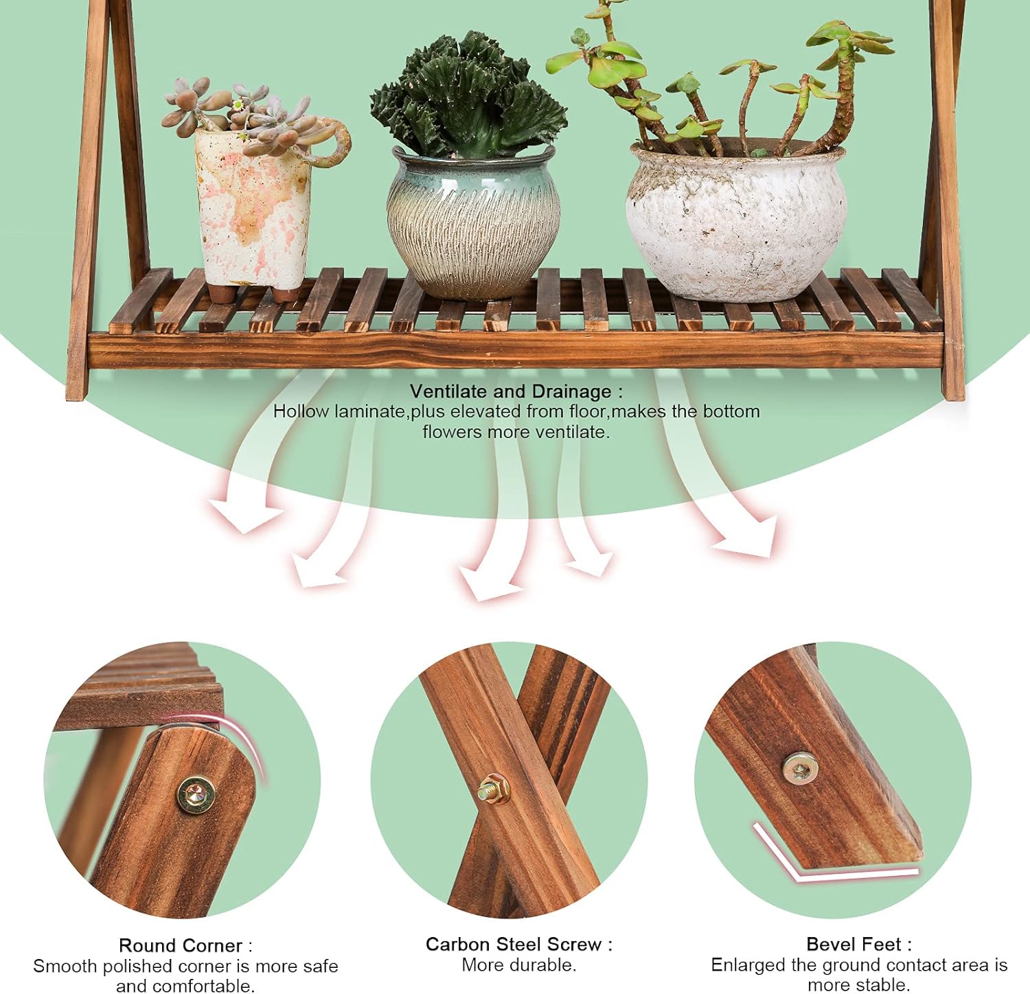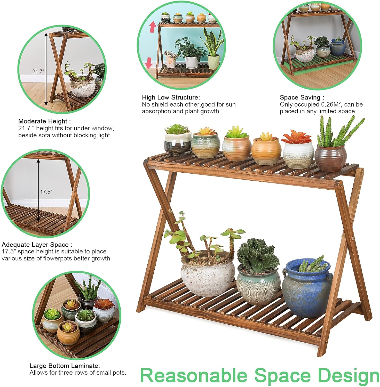 • 【WHOLE BOARD PINE WOOD】JOTBOOM 2 tiered plant holder shelf outdoor is made of WHOLE BOARD Argentina PINE WOOD, which is hard and stable.Rosin can relieve pressure and improve sleep quality.Undergoing 300 ℃ high temperature carbonization , the flower holder shelf water content reduced by 50%, anti-deformation Increased 50% to achieve the function of compression resistance, durable for many years; Clear and uniform surface texture suitable for any decor, indoor and outdoor use
