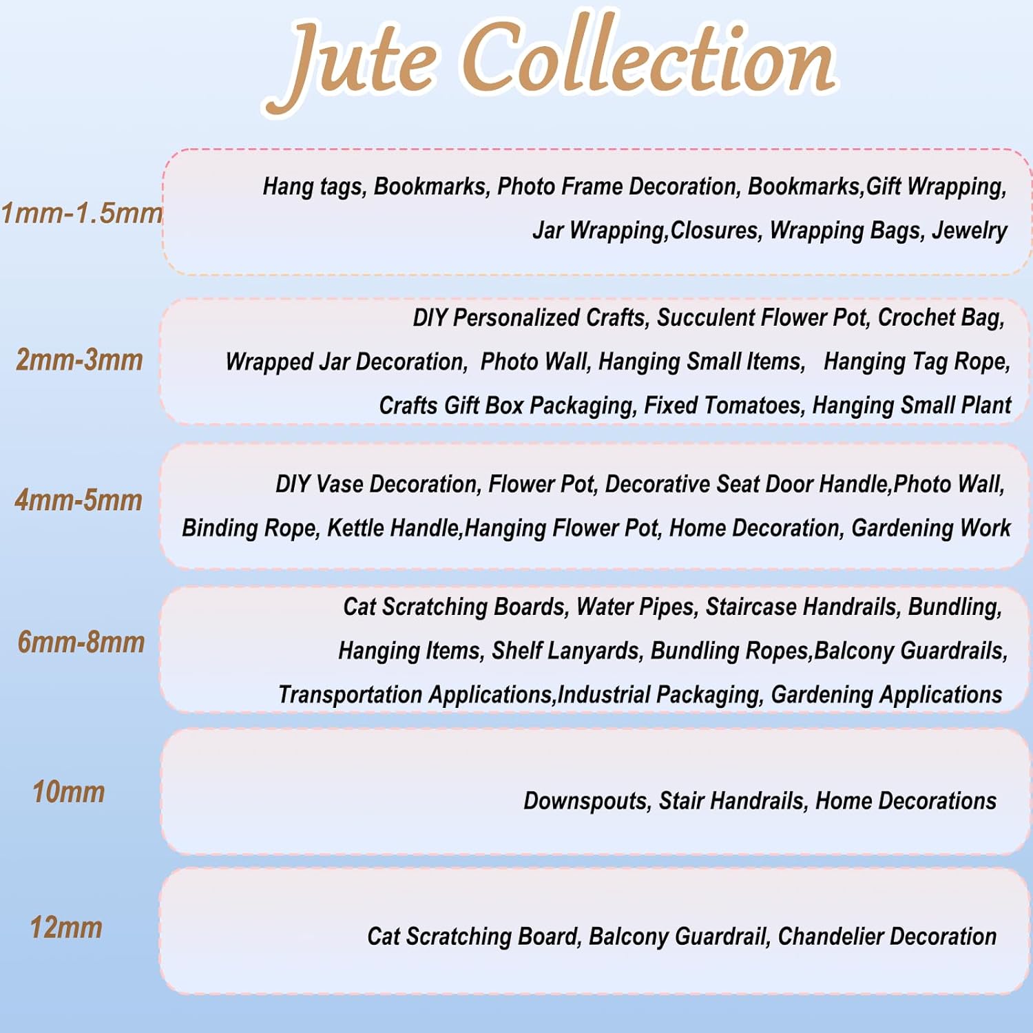 • Multipurpose Twine---This natural jute twine can be used in many occasions like gift wrapping, gardening, recycling, crocheting, crafting, binding and so on. Works great as packing material for the following festival like Thanksgiving Day, Christmas and more