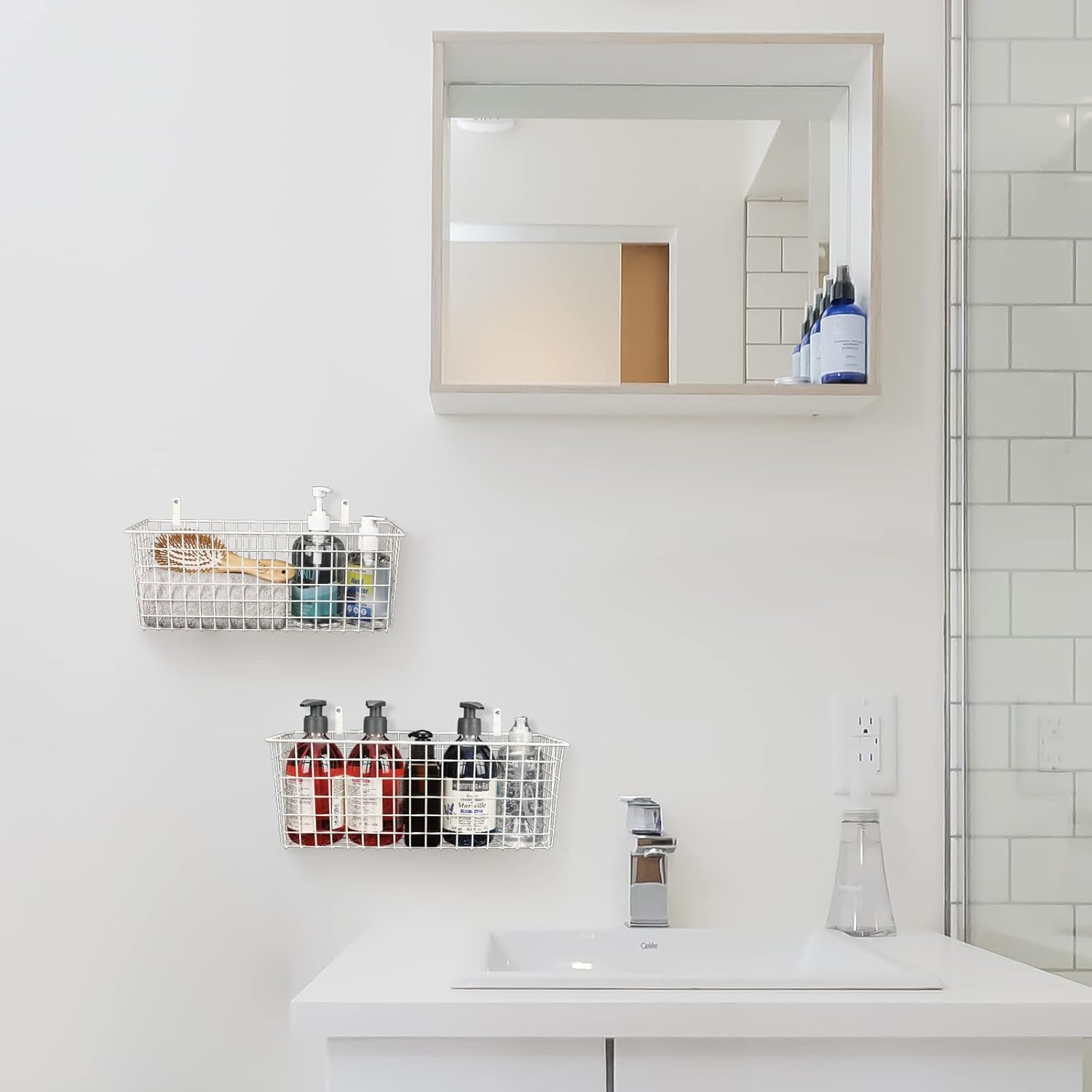 • Sturdy Metal Wire Baskets: These metal wall baskets are made of solid metal wire with anti-rust coating, sturdy and durable for long lasting. The wire baskets for organizing open design allows you to see the items inside the basket, which makes it easy to find the item you need. And easy to clean, just wipe clean with a soft damp cloth and dry towel.