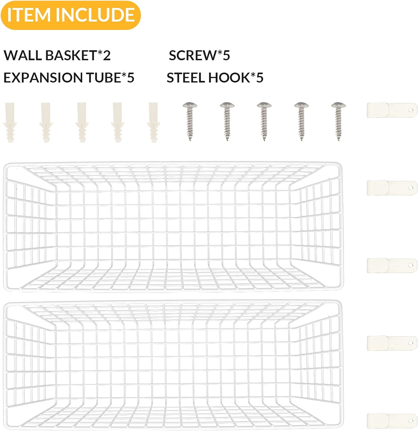 • Easy Installation: Includes 2 hanging baskets, complete with mounting hardware set (5 steel hooks + 5 expansion tubes + 5 screws). Simply mount the hooks to the wall using the included expansion tubes and screws, then hang the basket - you're ready to go! If you prefer not to hang it on the wall, you can also place it wherever you want. It's a versatile and convenient choice.