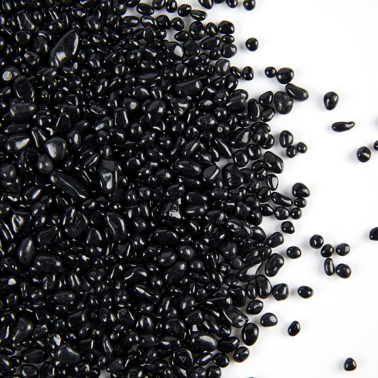 TWINKLING High Luster Round Fire Glass Stones,Glass Marbles Pebbles,Glass Beads Gems for Fire Pit Vase Fillers Crafts Aquarium Garden Decoration,3-6mm,1-Pound Jar (Black)