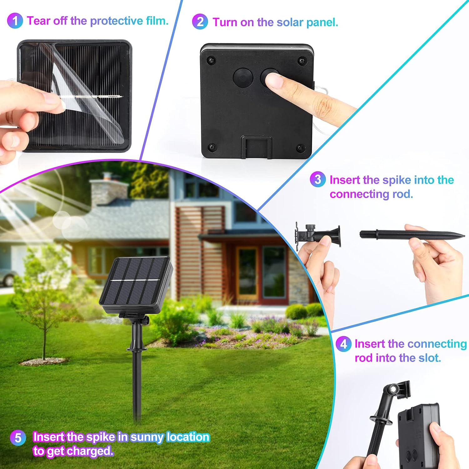 • Super Easy to Install: You surely will enjoy the ease of putting on the string lights for the highly flexible silver wire can be easily bent into any shapes you want and wrapped around trees, fences or any other objects. The solar panels can be either mounted on the wall or plug into the grass to get sunlight exposure. Considerably all necessary mounting accessories are included in the package for instant use